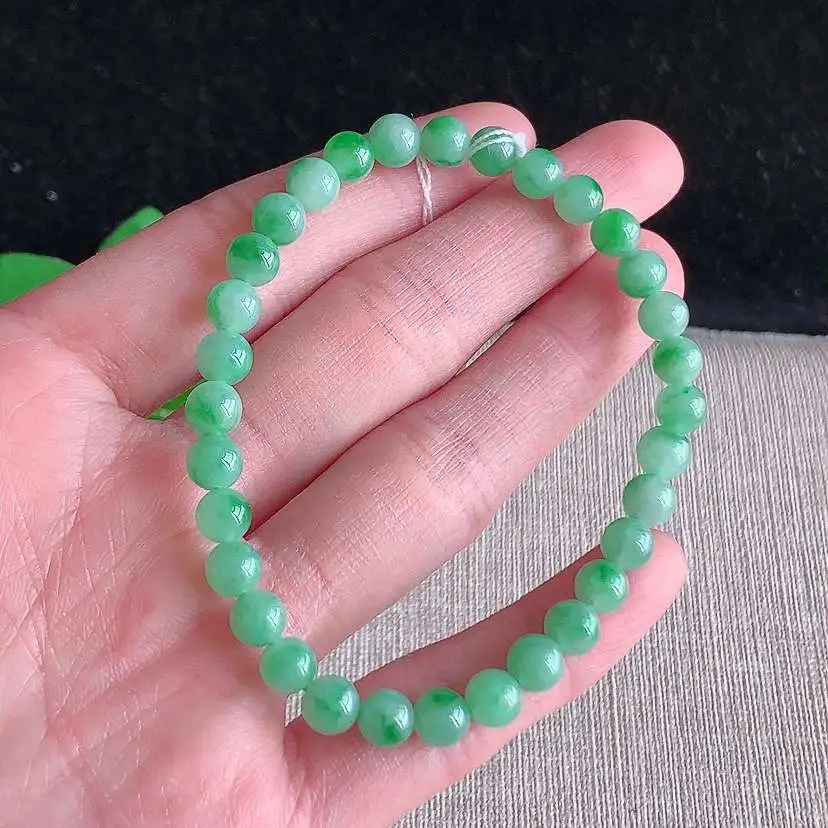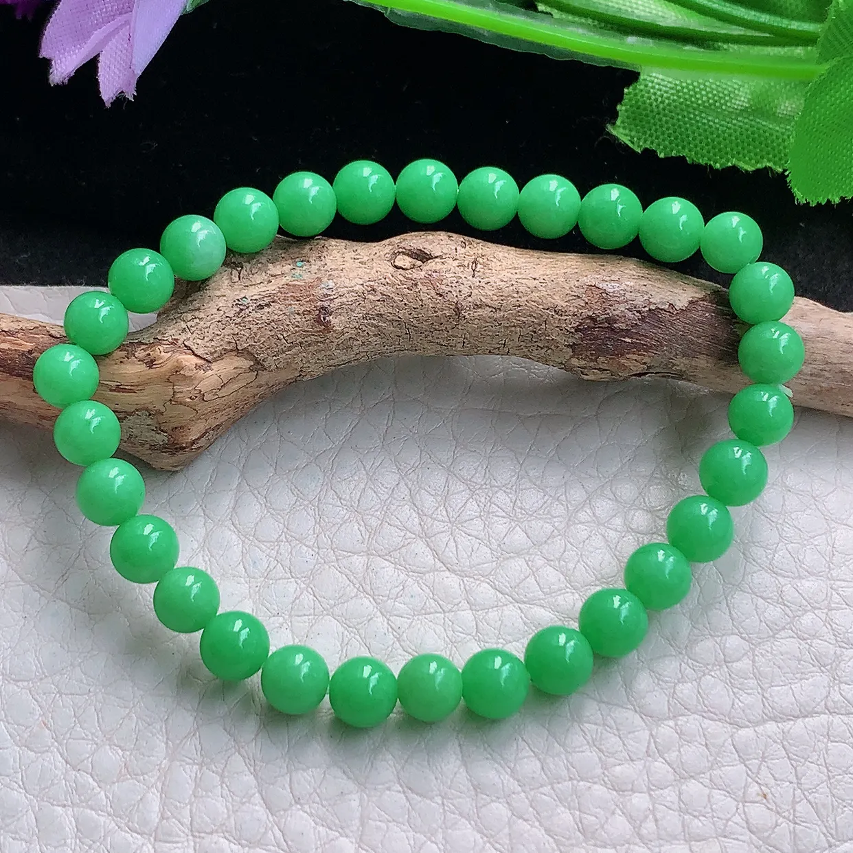 lz缅甸翡翠精雕阳绿女款清秀圆润6mm玉手链 玉手串