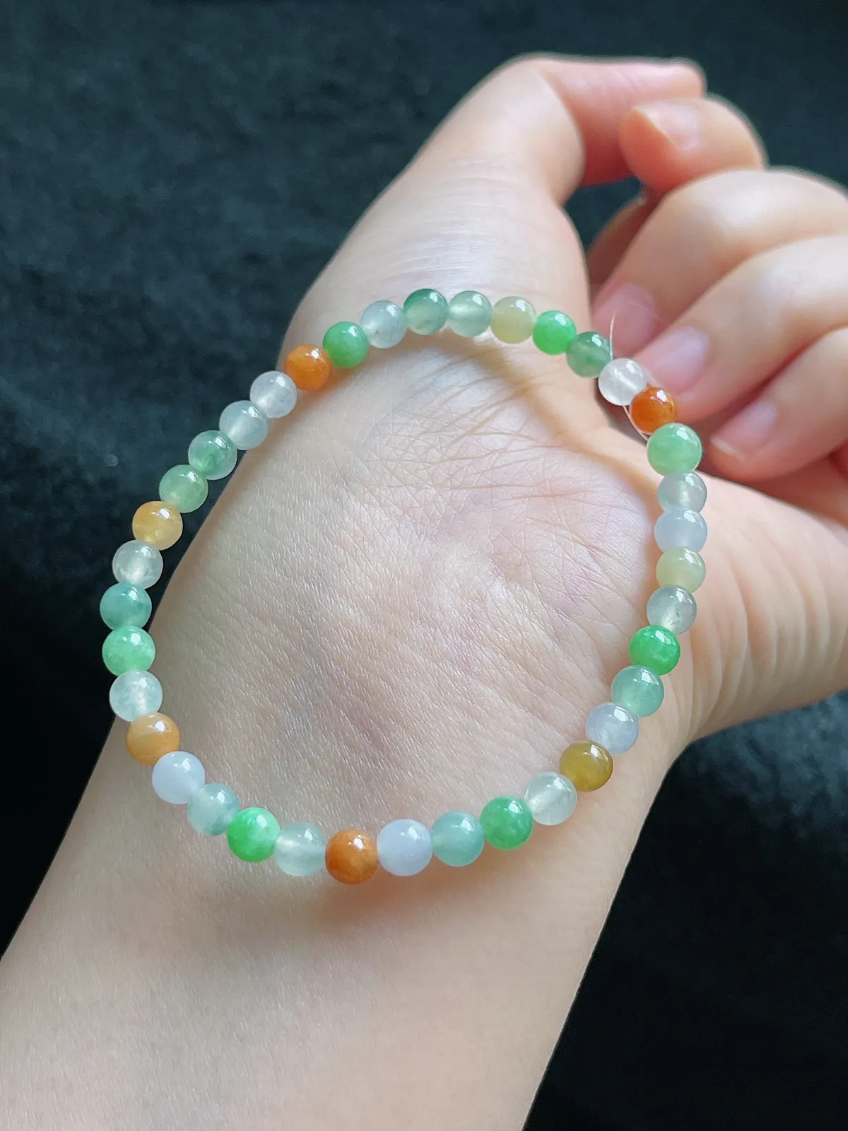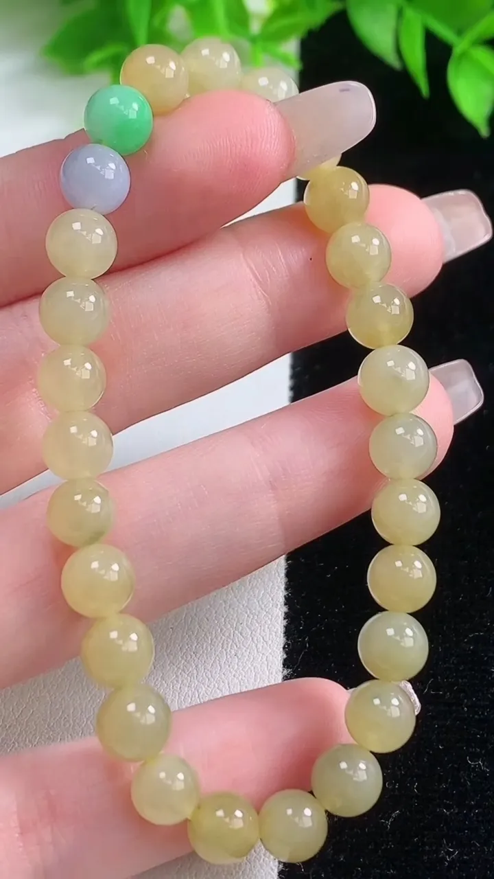 天然A货翡翠种三彩算盘珠手串,尺寸7-4.5-40颗,重量:18.57g1月18日 工厂直销收藏佳品