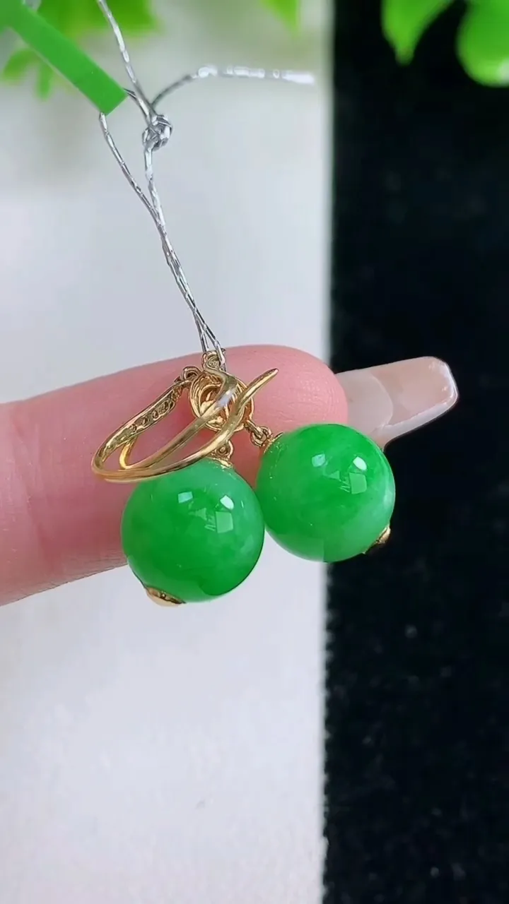 天然A货翡翠圆珠耳坠,尺寸9,重量:3.79g1月18日 工厂直销收藏佳品,种好水足,色泽均匀,有种