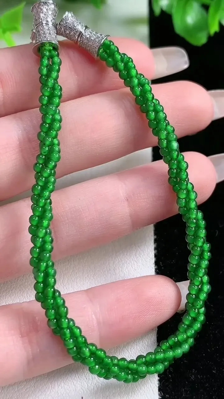 天然A货翡翠小米珠三排手串,尺寸2,重量:12.14g1月21日 工厂直销收藏佳品,种好水足,色泽均