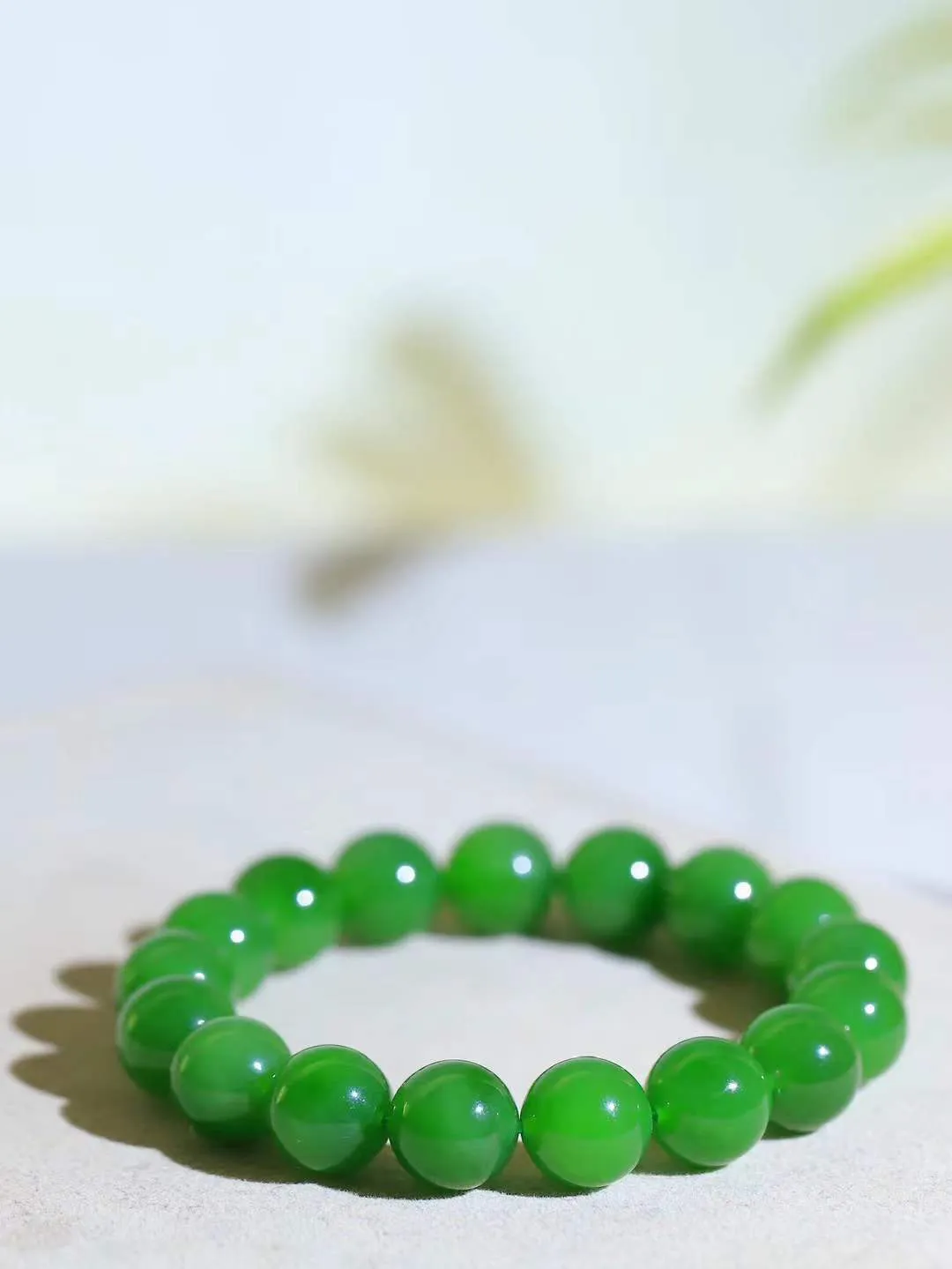 翠绿圆珠手链 玉质细腻 色泽艳丽清新 整体尺寸6.2