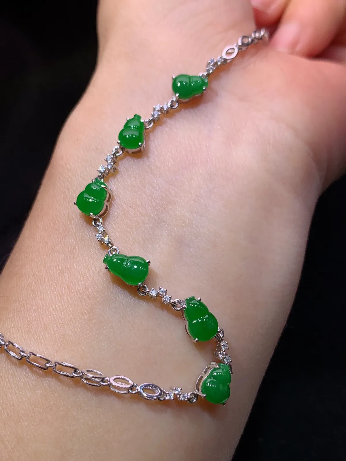 辣阳绿葫芦手链,18k金镶嵌,简约时尚,冰润色阳,种水足,Xj 尺寸7.5*4.8*2