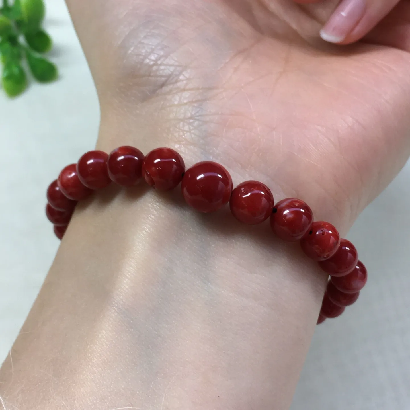 【天然日本阿卡牛血红珊瑚8.87mm圆珠单手链】难得高瓷度,日本产地,阿卡材料,整条有虫眼少白芯的阿