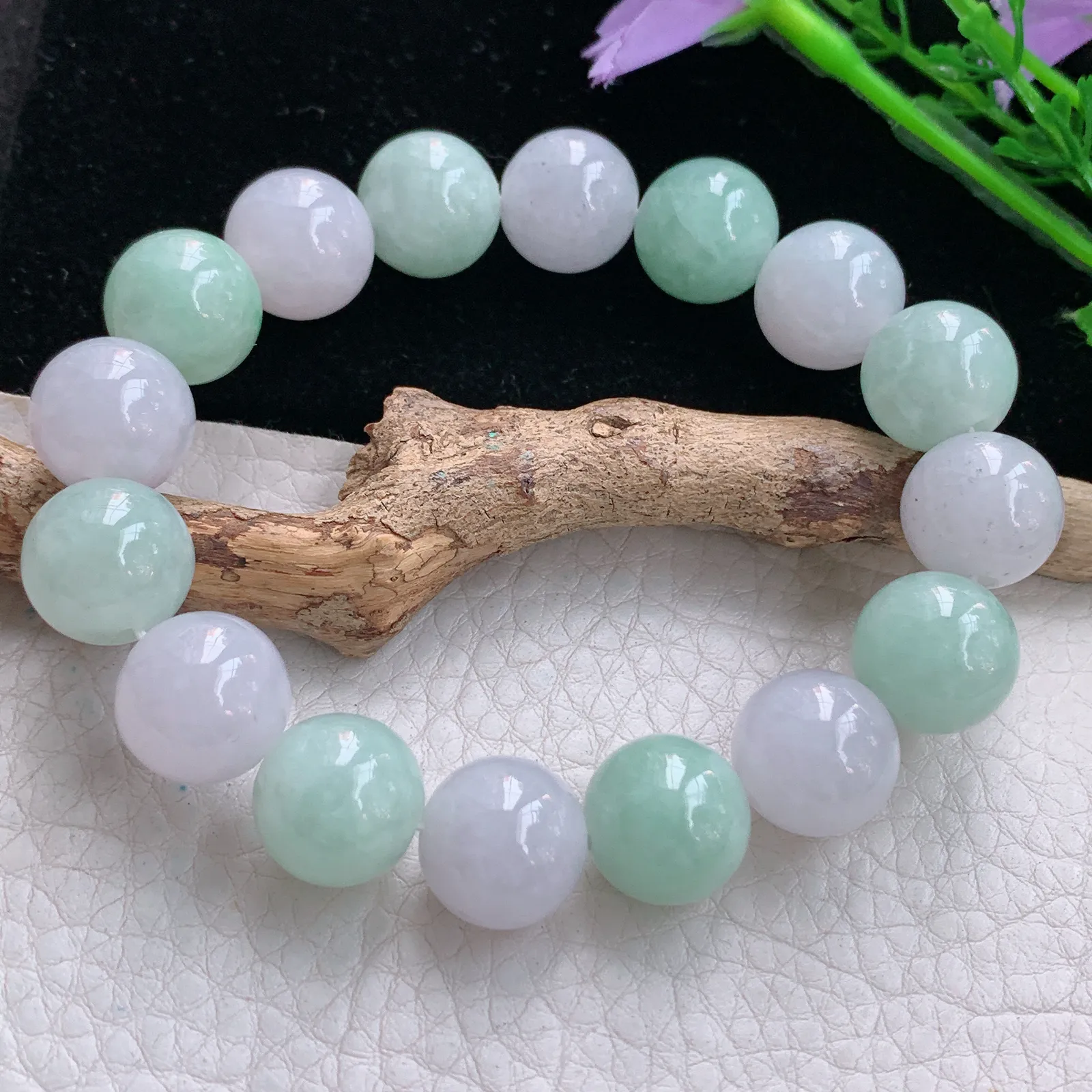zen实拍 天然缅甸翡翠双彩水润13.5mm圆珠玉手链 玉手串