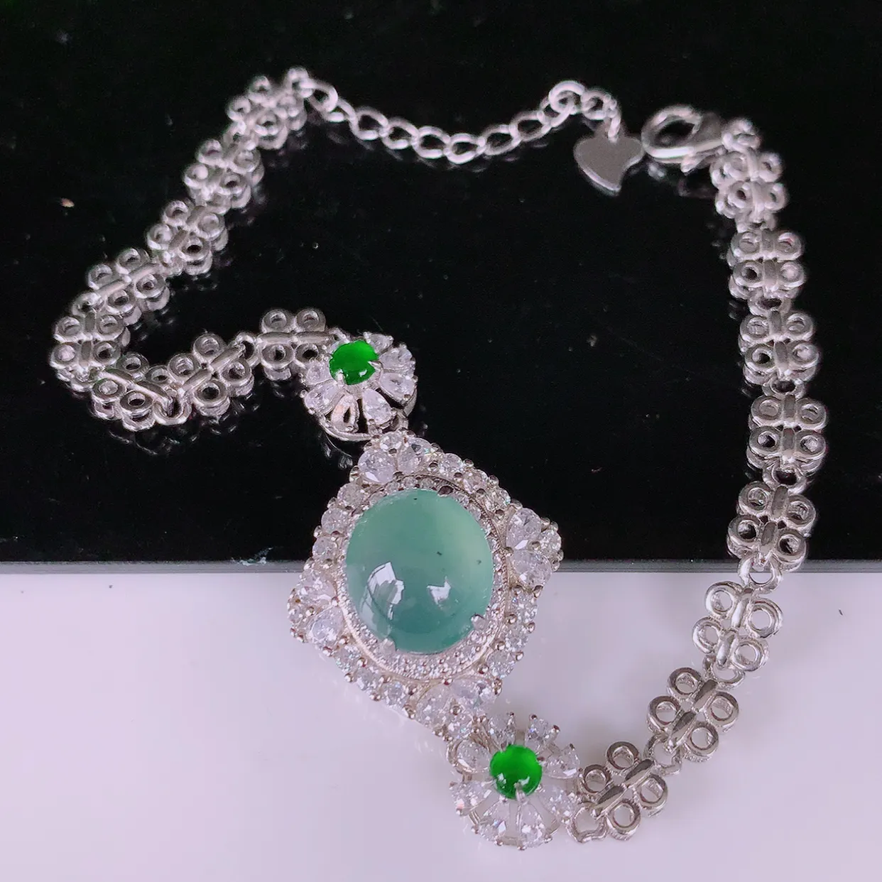 冰透满绿翡翠925银镶嵌手链,自然光实拍,翠色灵动,颜色漂亮,种老水足,品相佳,佩戴佳品!#97.1