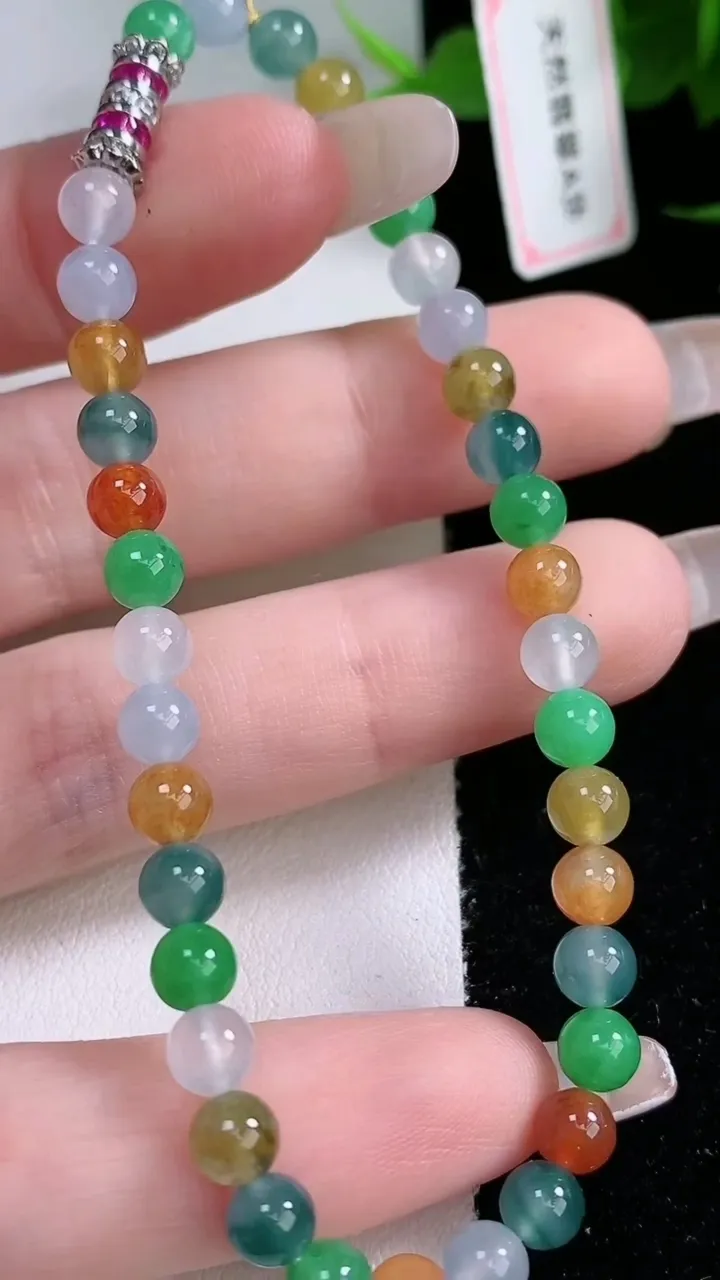 天然A货翡翠三彩圆珠手串,尺寸4.8-37颗,重量:8.70g2月3日 工厂直销收藏佳品,种好水足,