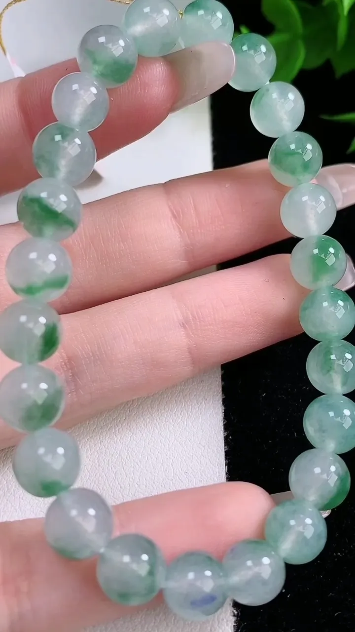 天然A货翡翠种飘花圆珠手串,尺寸8-24颗,重量:21.15g2月3日 工厂直销收藏佳品,种好水足,