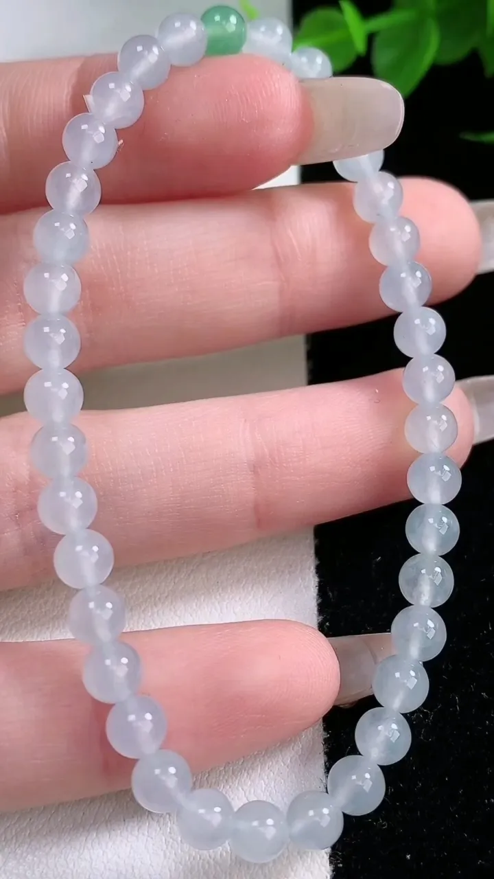 天然A货翡翠种白冰圆珠手串,尺寸4.7-37颗,重量:7.46g2月3日 工厂直销收藏佳品,种好水足