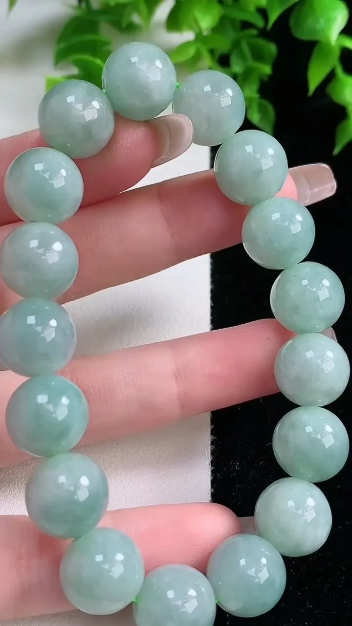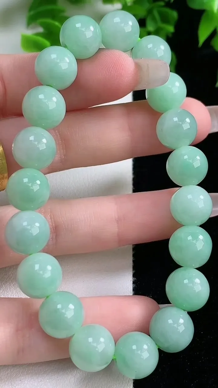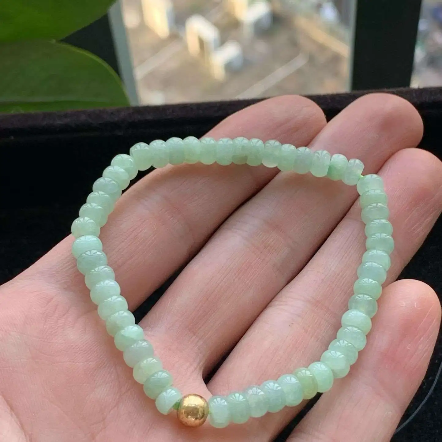 A货天然翡翠冰糯种浅绿算盘珠手链52颗重量12.67 2月4日