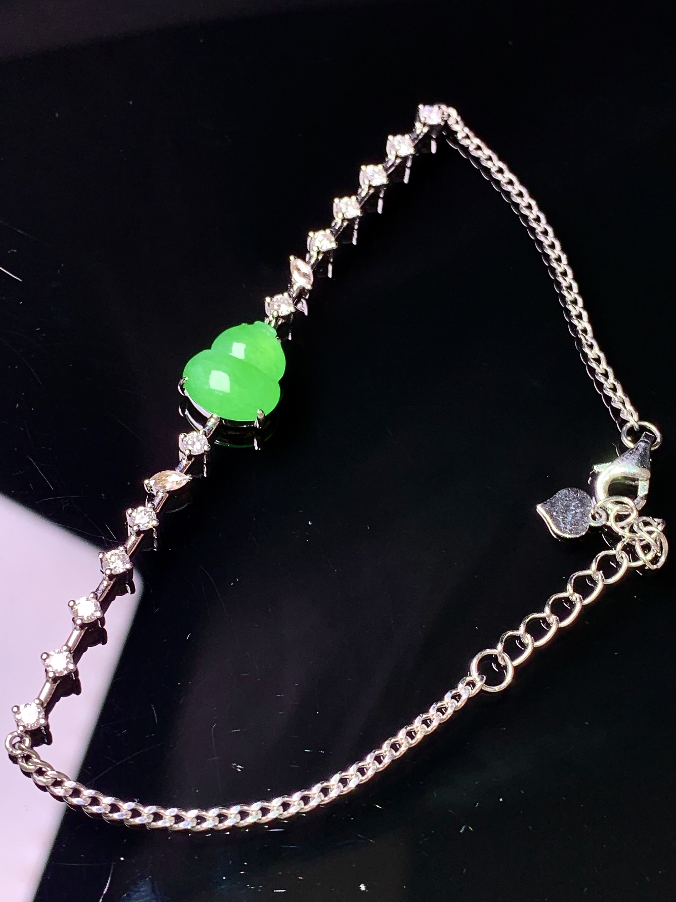 18k金钻镶嵌翠绿葫芦手链 玉质细腻 色泽艳丽清新 水润亮眼 整体尺寸180*8.8*4.5m5