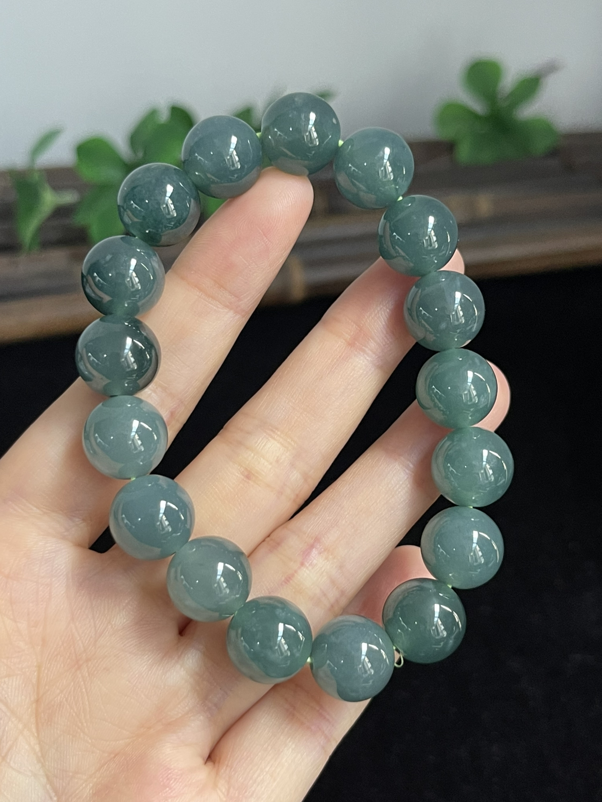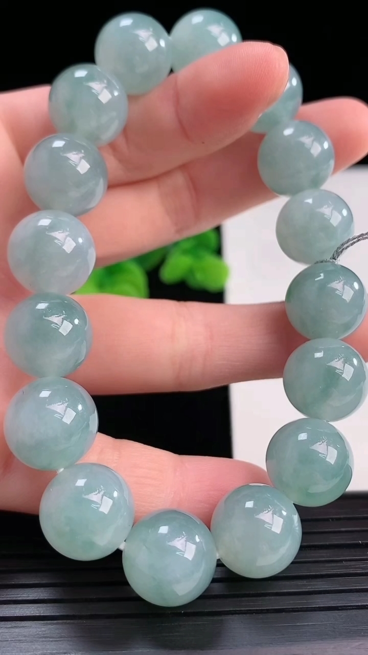 11.8MM,冰种透润深蓝色翡翠手链