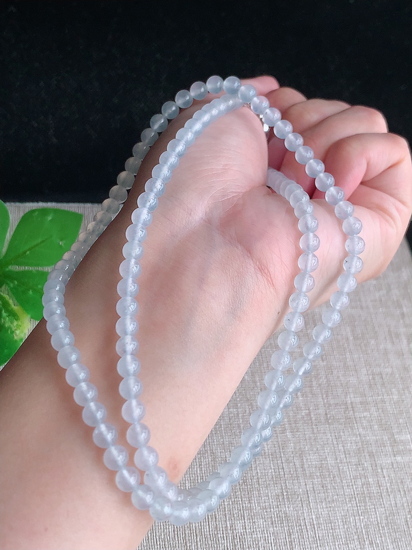 天然A货翡翠白冰白月光圆珠项链毛衣链118颗 尺寸4.8mm 重量29.20g 0417