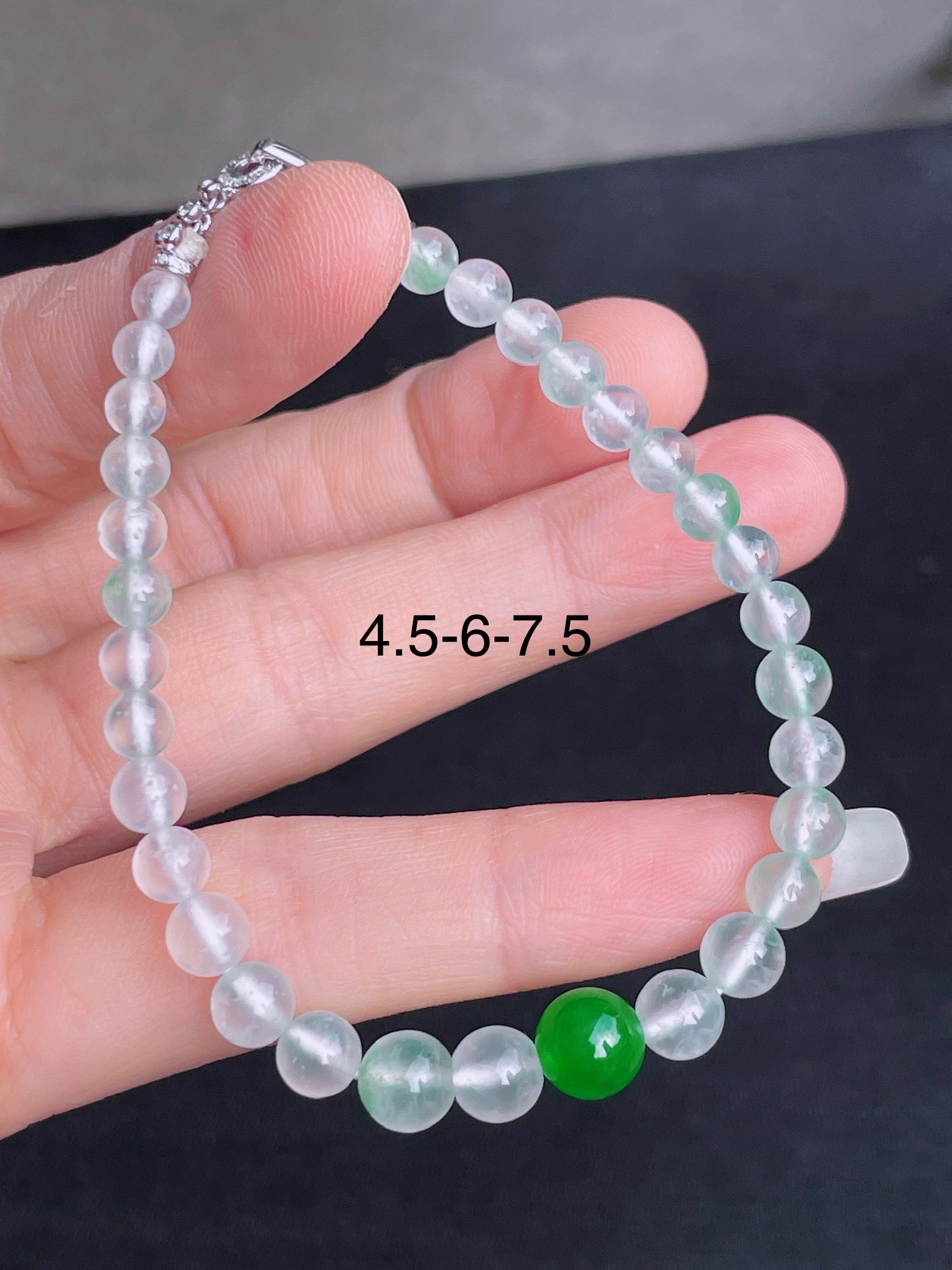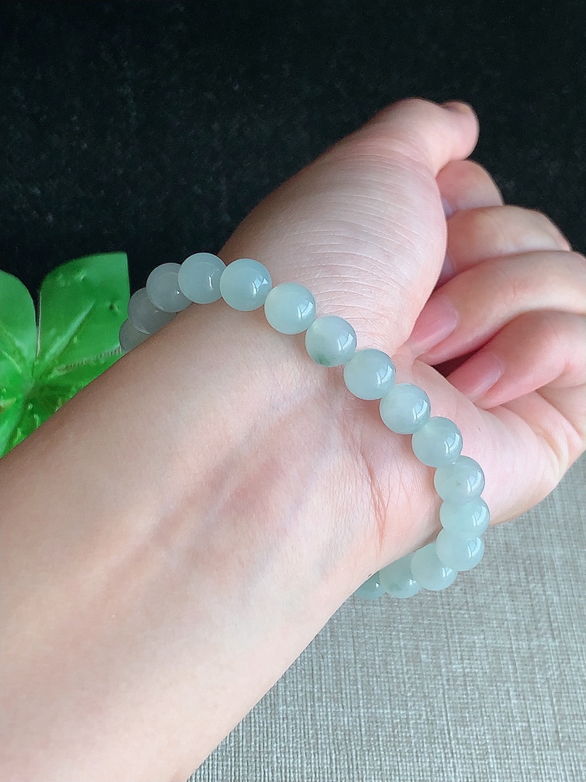 A货天然翡翠冰糯种飘绿手串重量70.75 4月19日