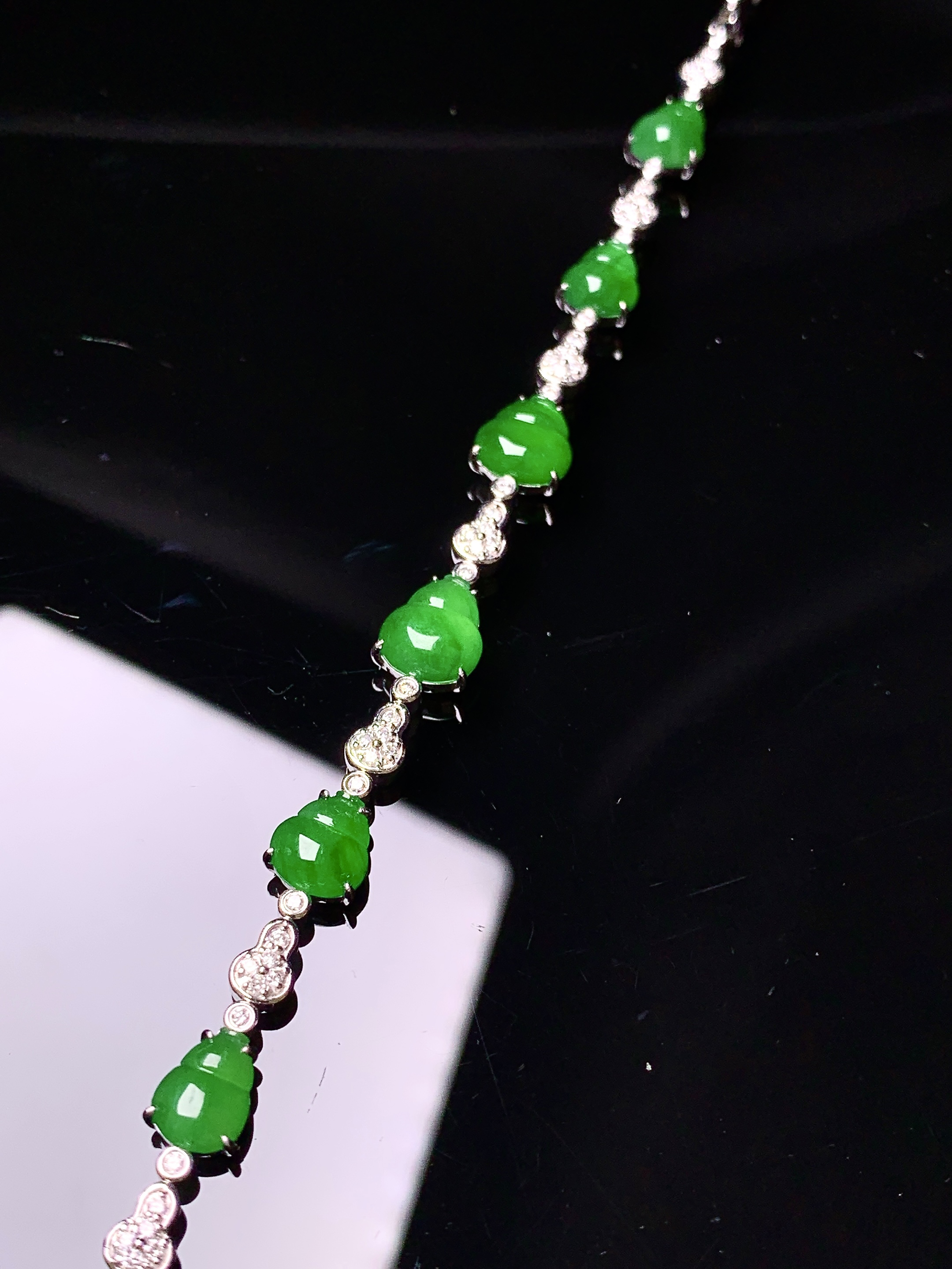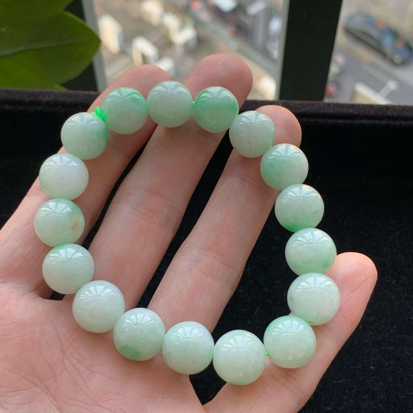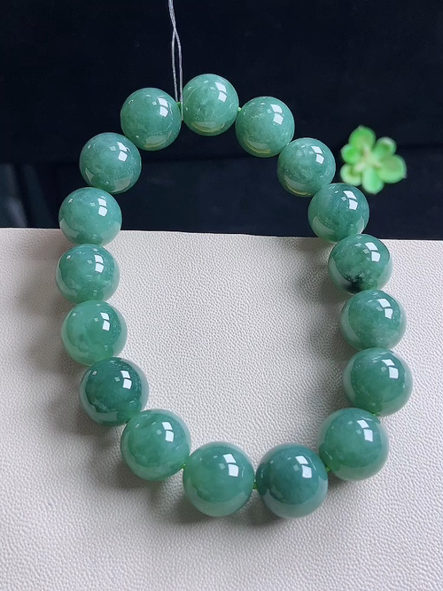 A货天然翡翠冰糯种飘绿手串重量53.87 4月23日