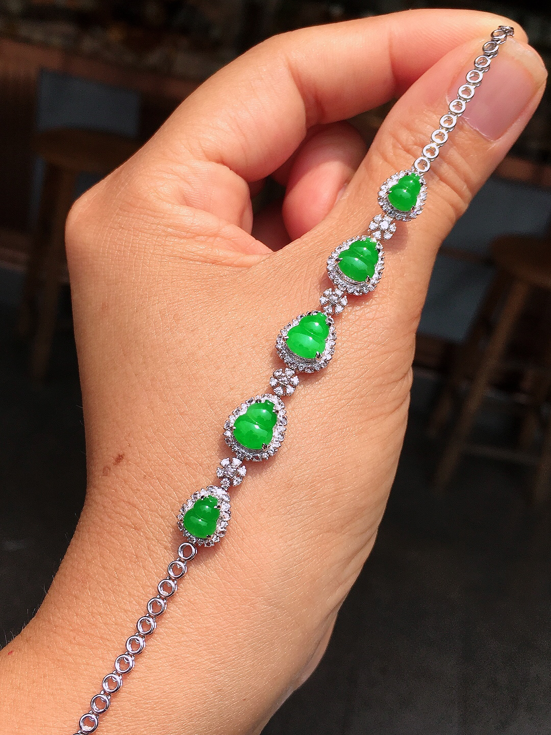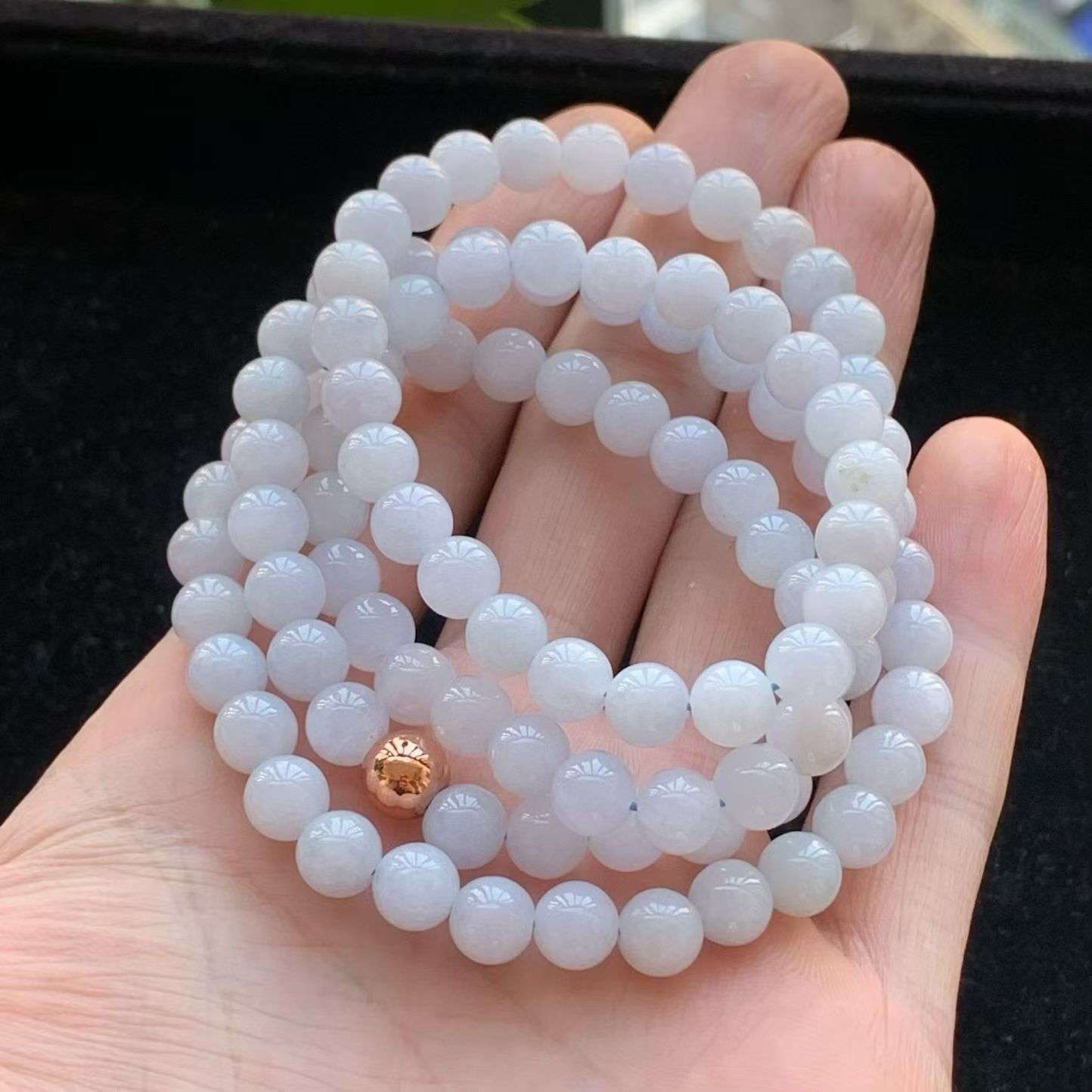 A货天然翡翠冰糯种满绿小米珠手链重量3.72 4月24日