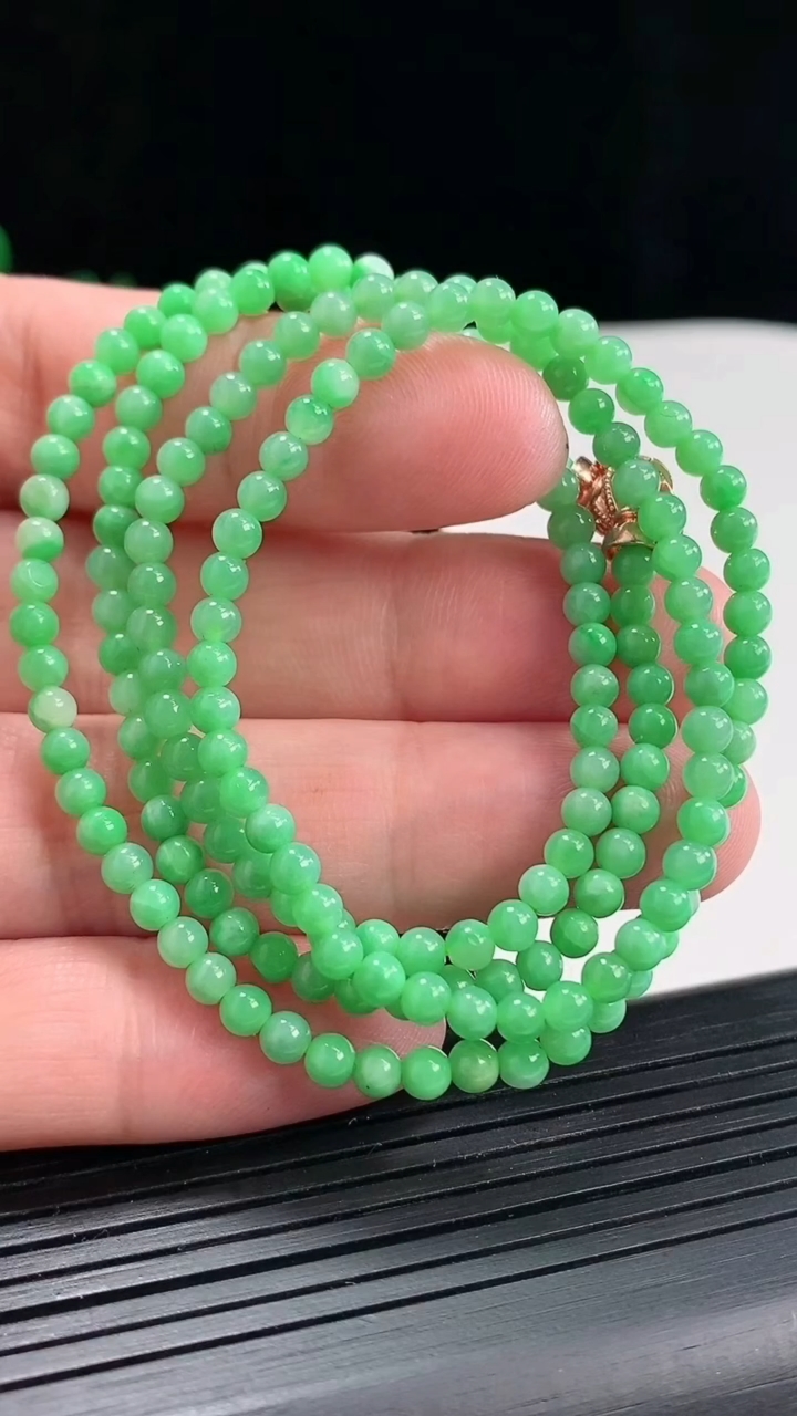 天然A货翡翠圆珠项链,尺寸3.5-180颗重量:13.89g4月25日 工厂直销收藏佳品,种好水足,
