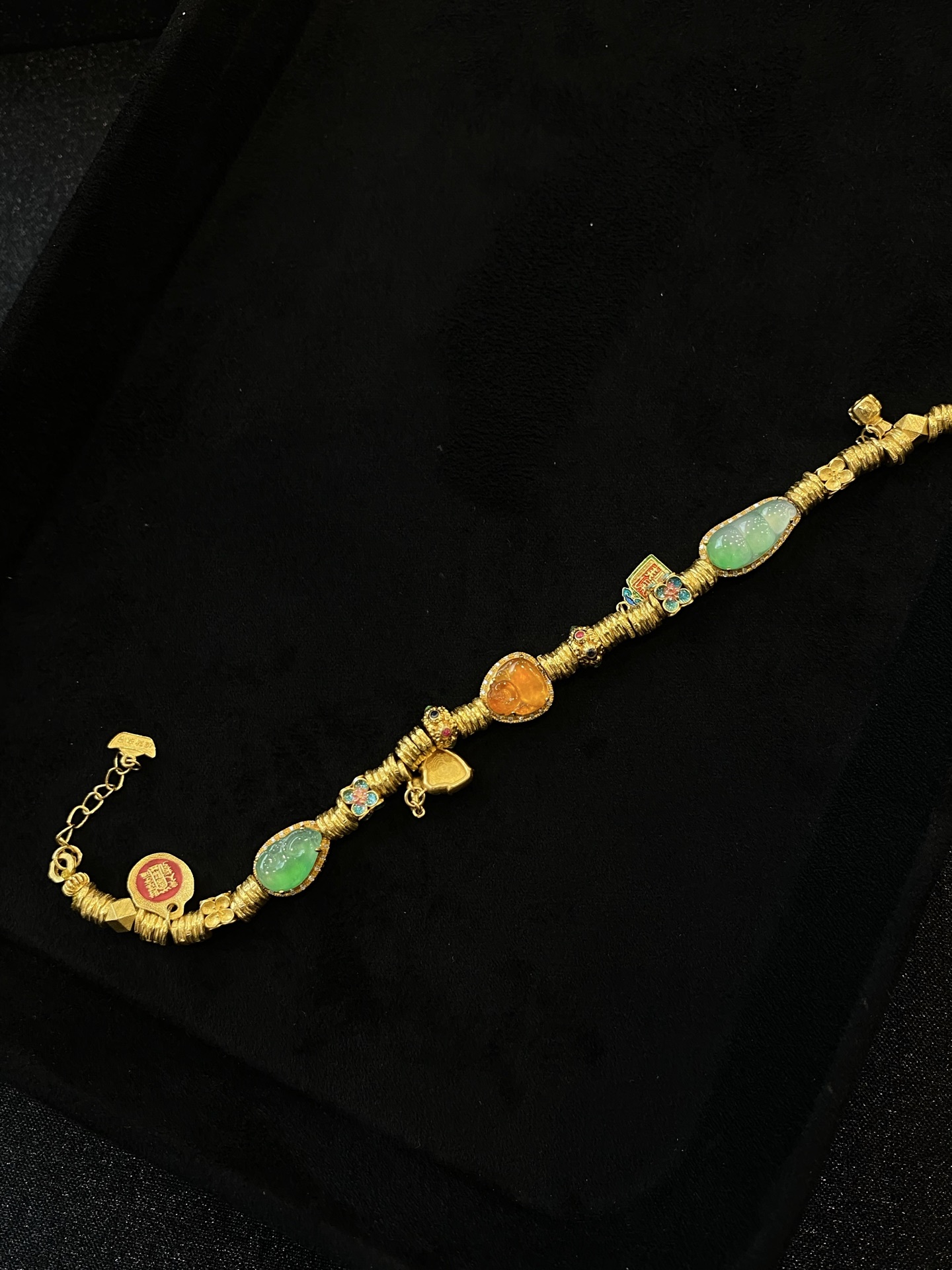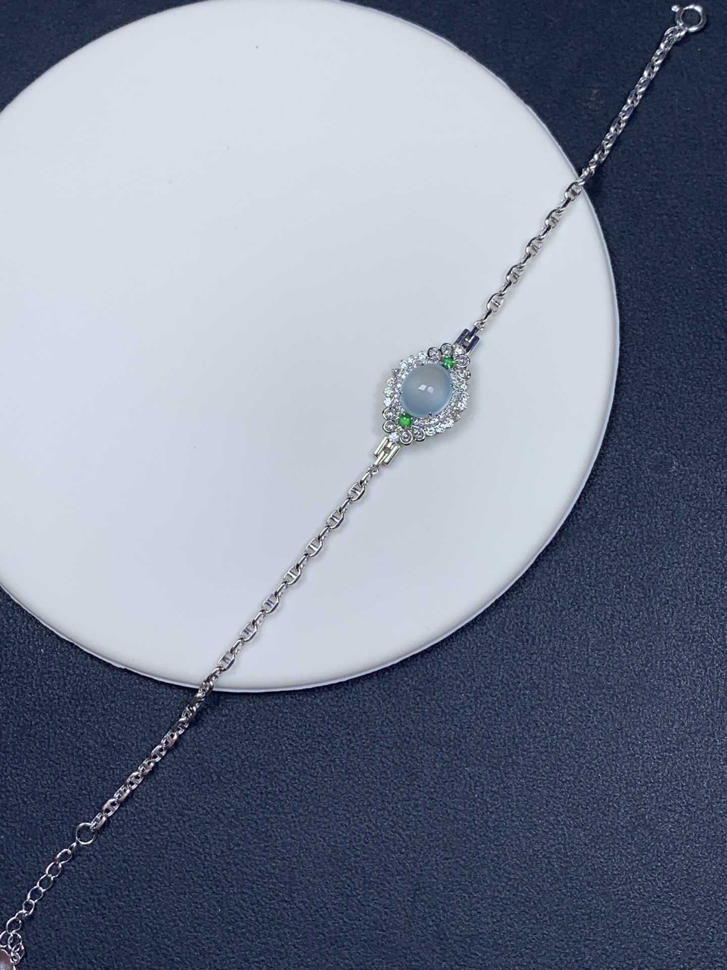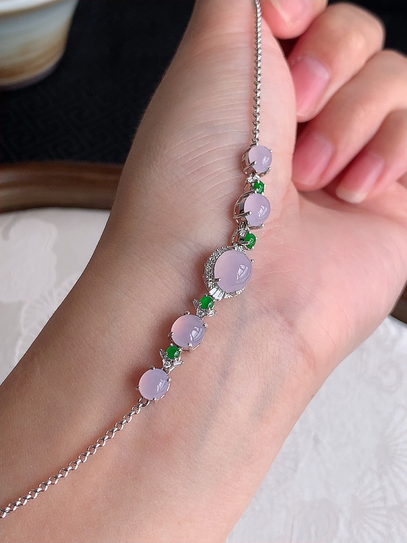 天然A货翡翠18K金伴钻镶嵌紫罗兰蛋面手链 尺寸7-6.3-7.3mm 重量4.75g 0429