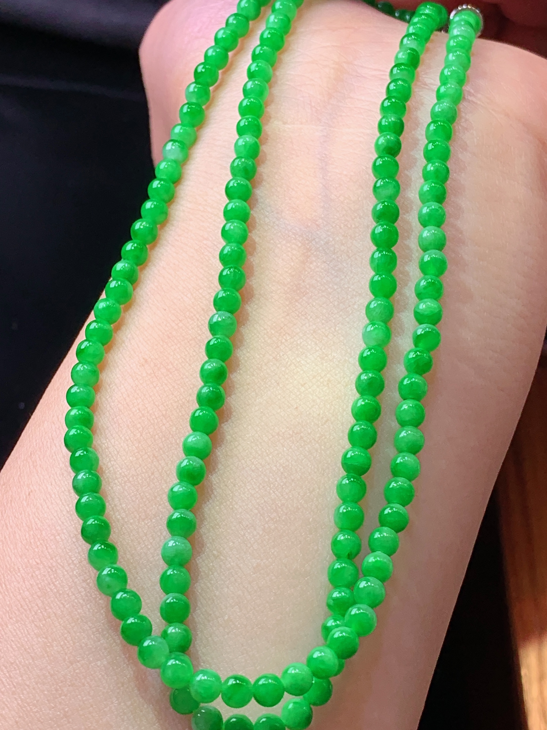 翠绿圆珠项链 玉质细腻 色泽艳丽清新 水润亮眼 整体尺寸3.5 m2