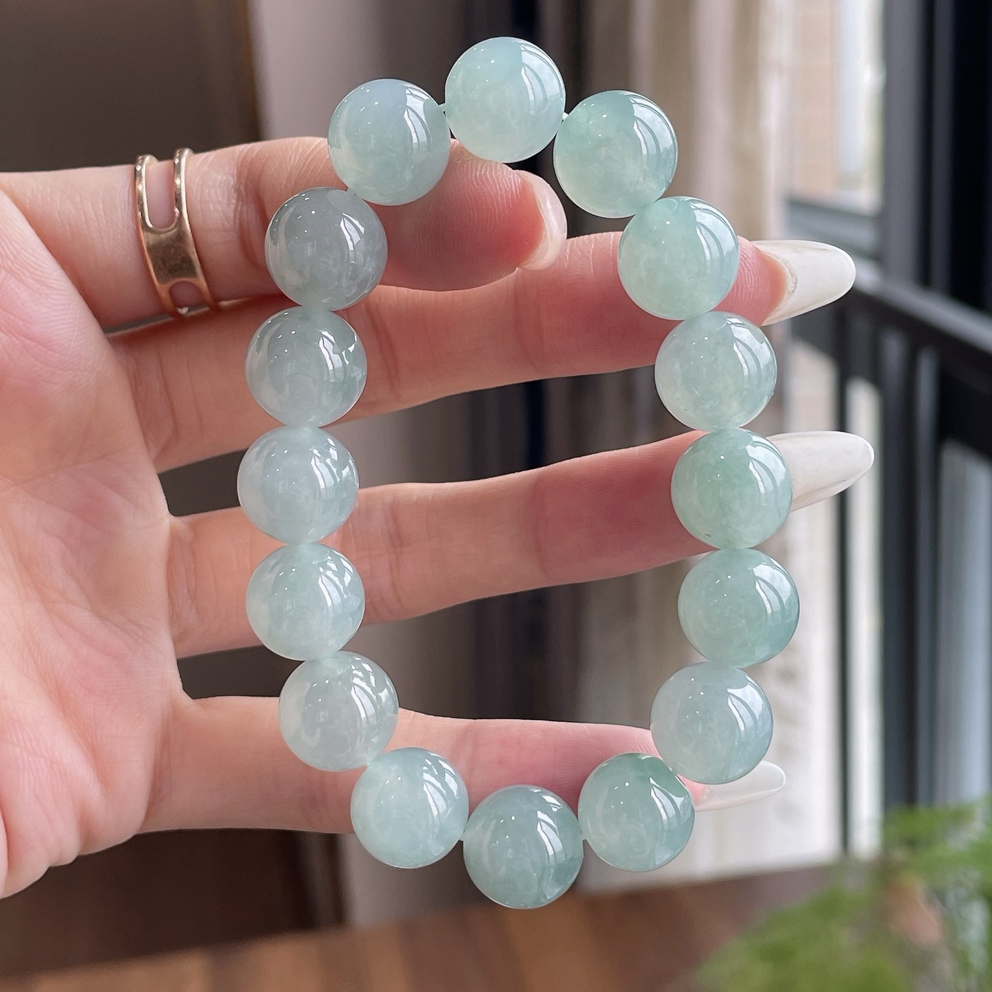 天然A货翡翠圆珠手串,尺寸13.5-16颗,重:62.39g4月18日 工厂直销收藏佳品,种好水足,