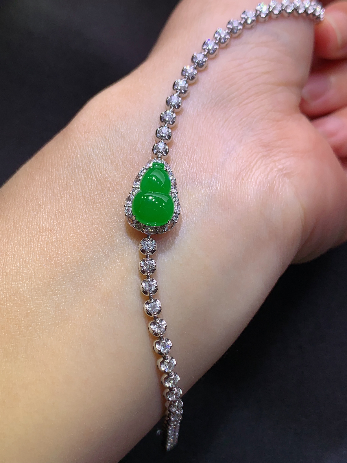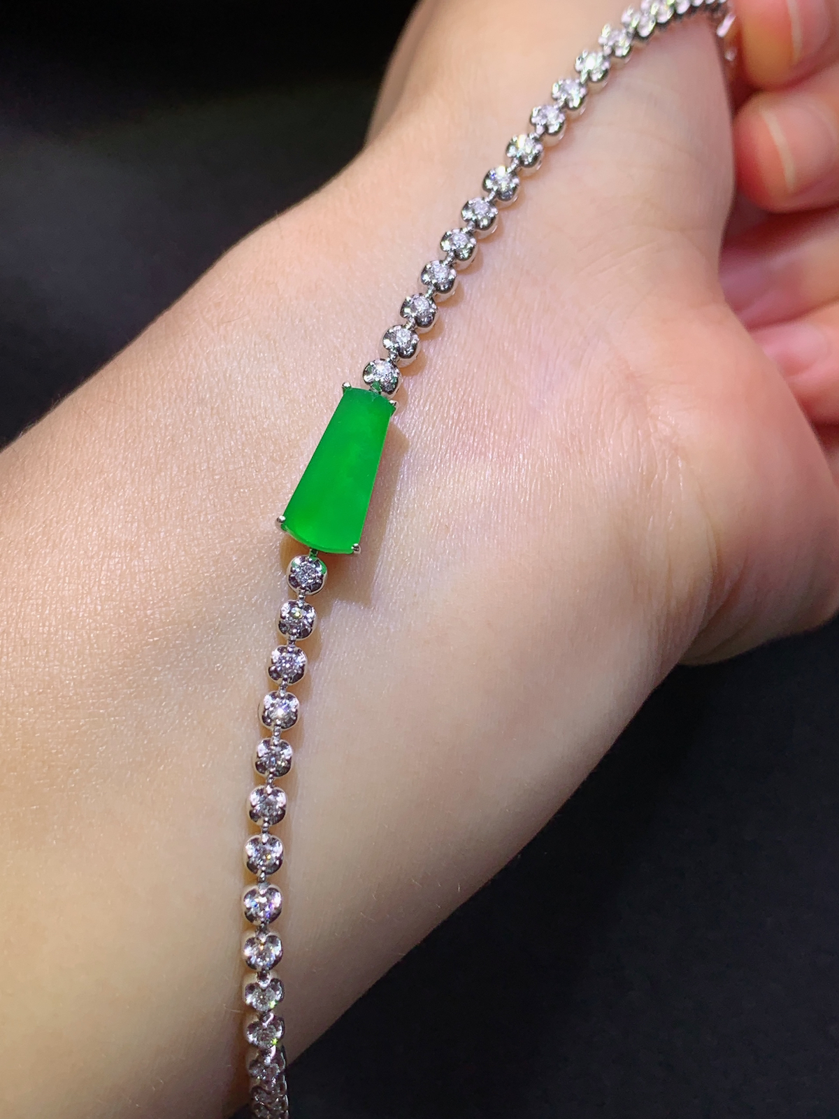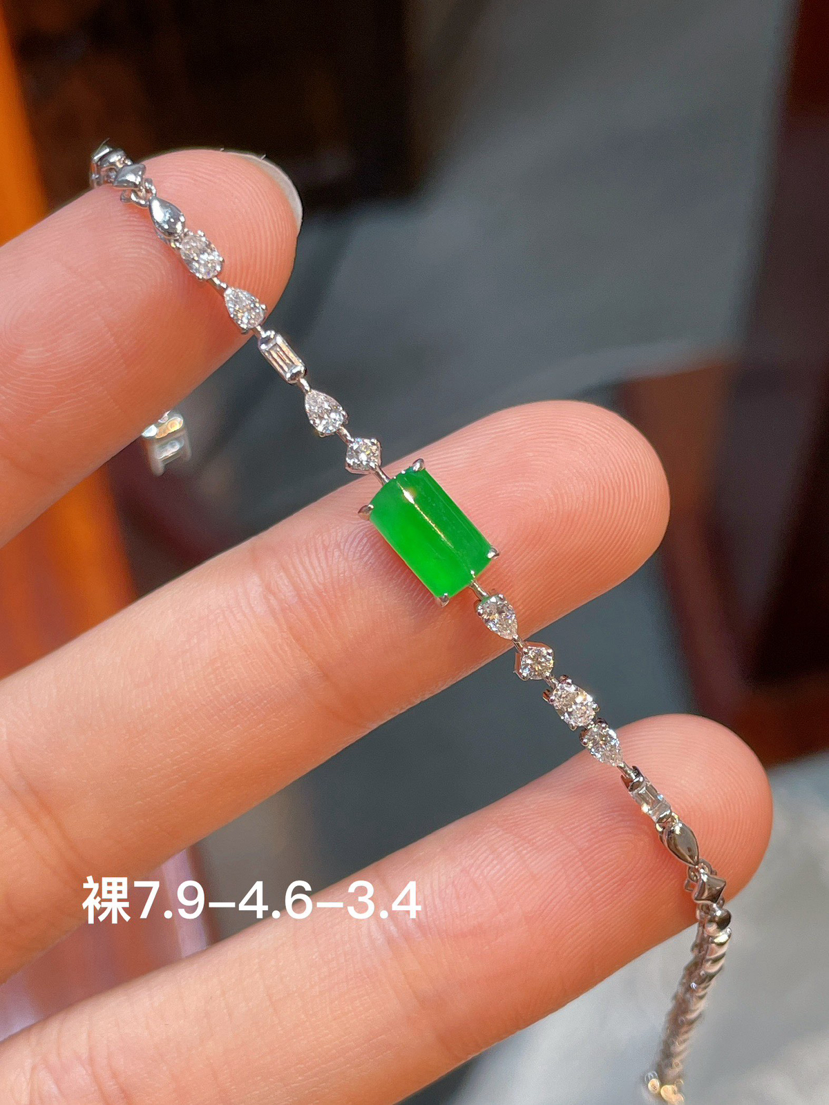 A货天然翡翠冰糯种满绿手链重量3.70 4月19日
