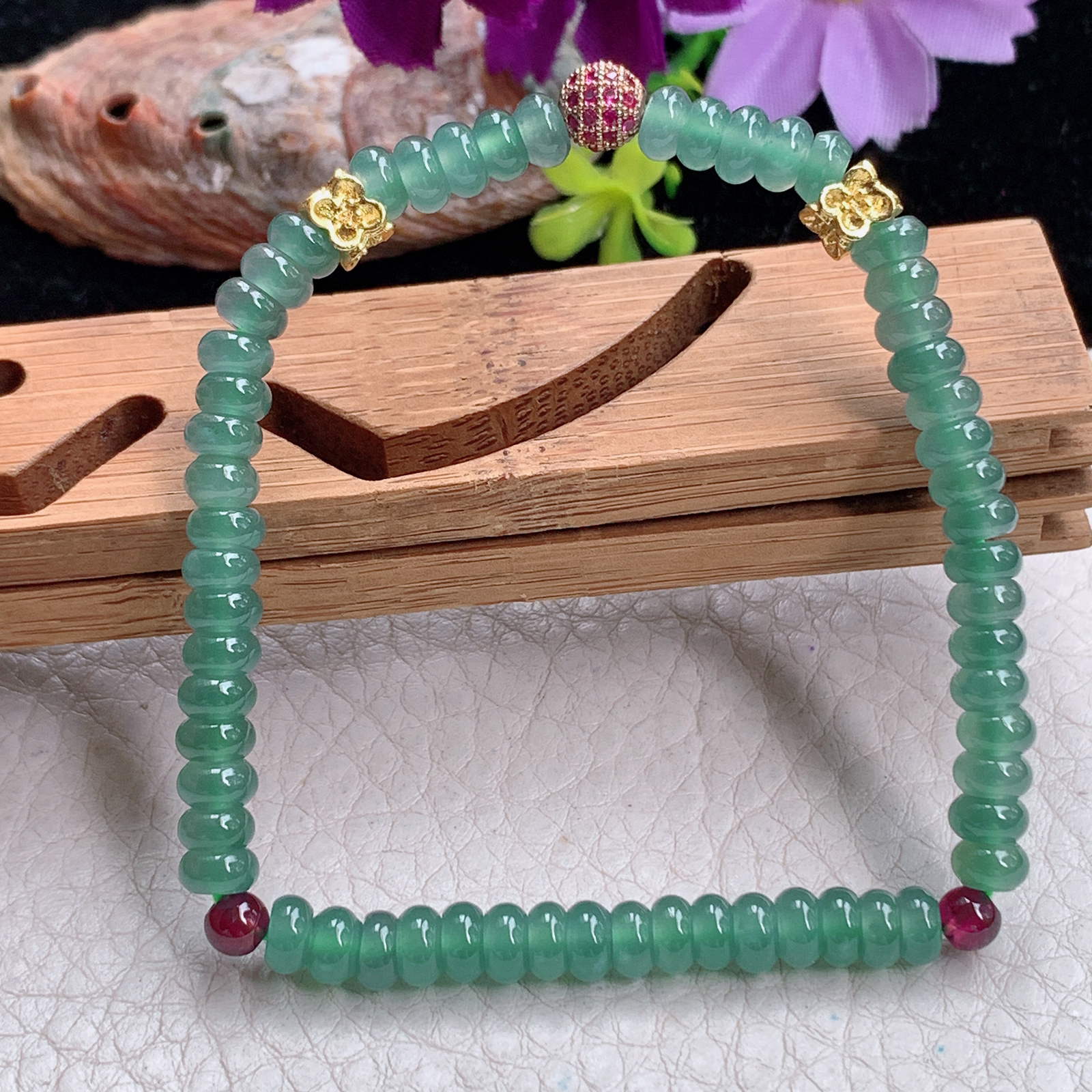 A货天然翡翠冰糯种满绿小米珠手链重量3.72 4月19日