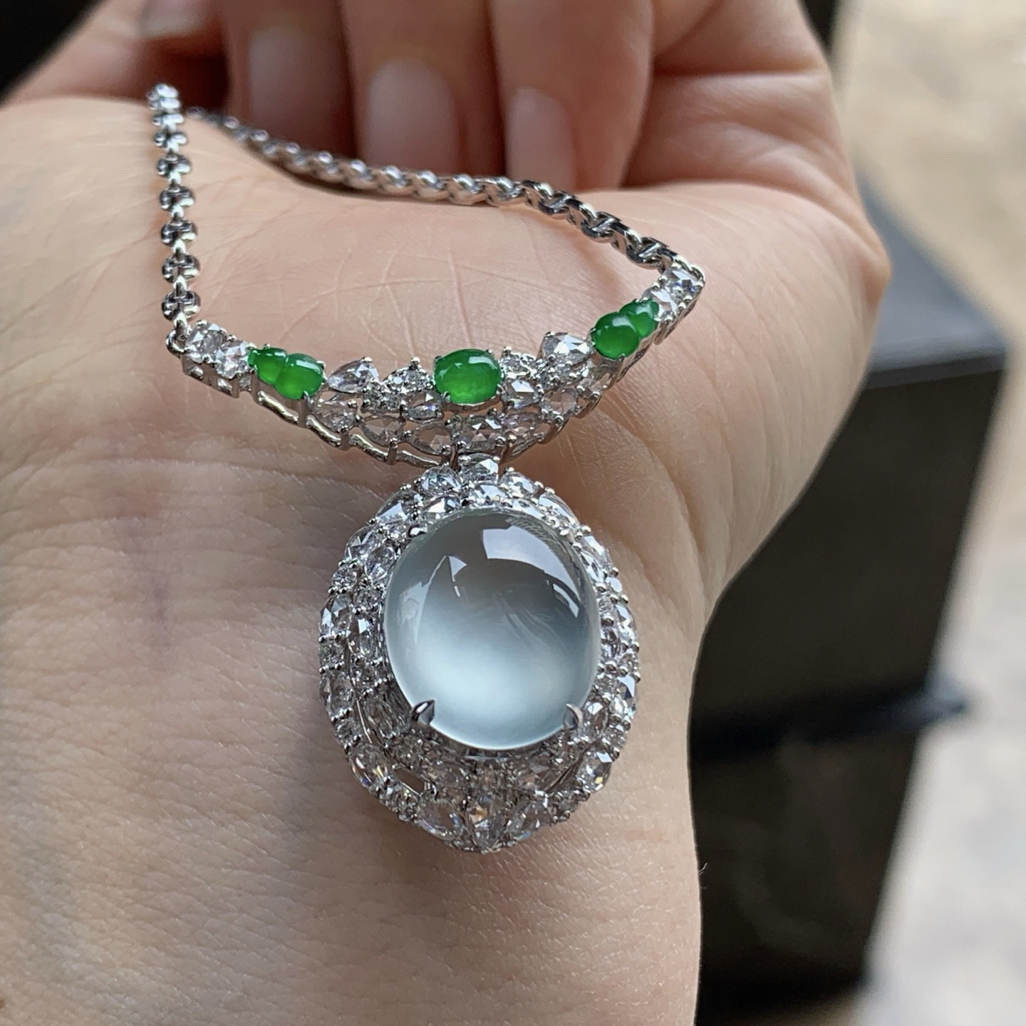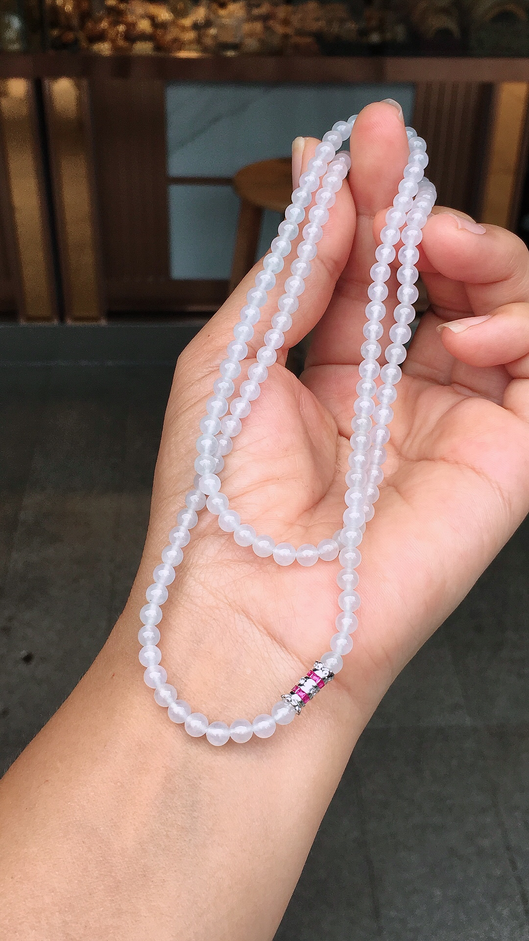 A货天然翡翠冰种蓝水项链108颗重量33.84 4月24日