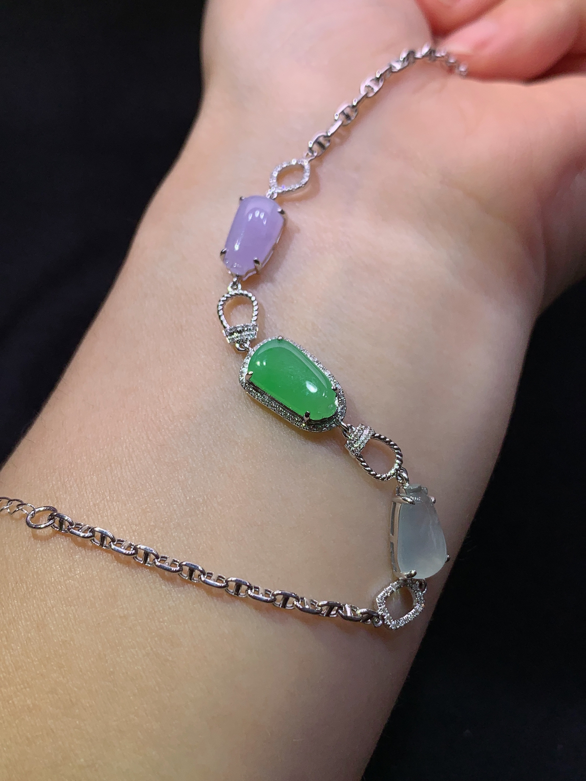 A货天然翡翠冰糯种飘绿手串重量70.75 4月24日
