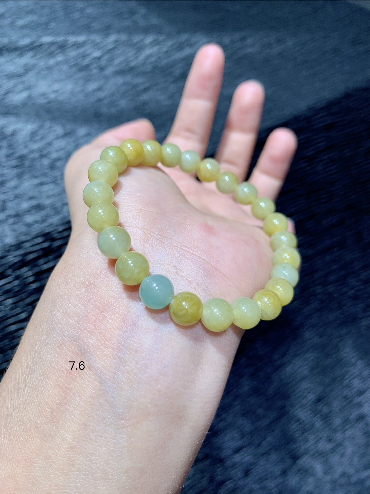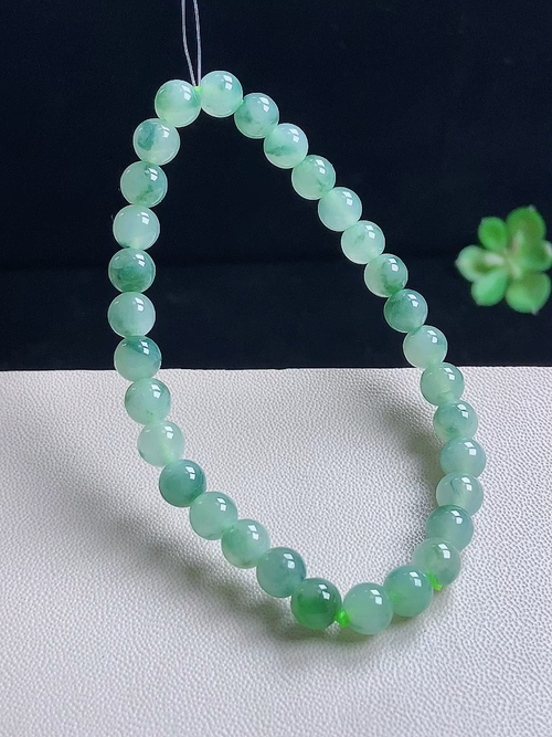 缅甸天然翡翠A货,卡8冰种起胶满绿晴阳绿圆珠手串手链,尺寸:8mm/22颗,长度185mm,重量:2