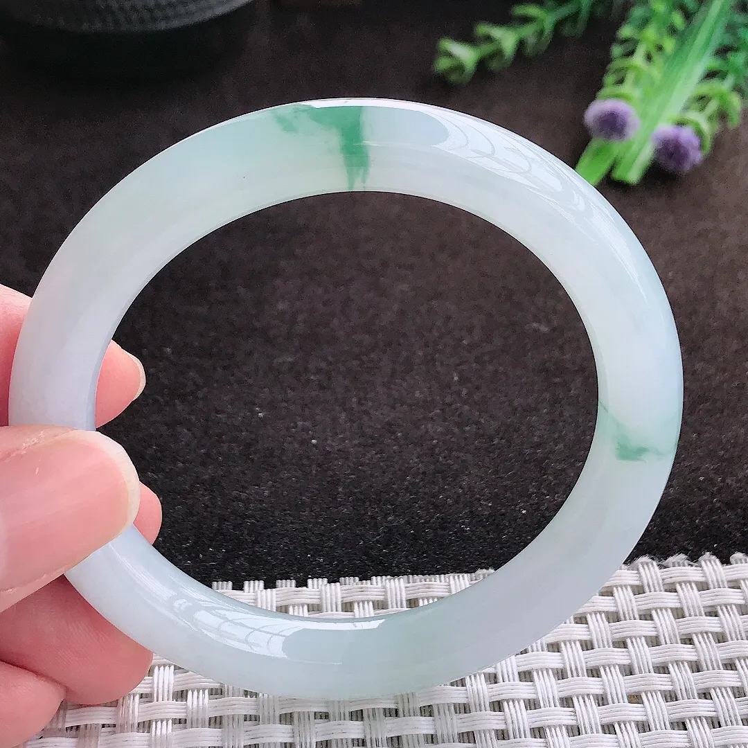 自然光54.5/9老坑冰胶果冻冰飘花圆条手镯翡翠玉镯手环