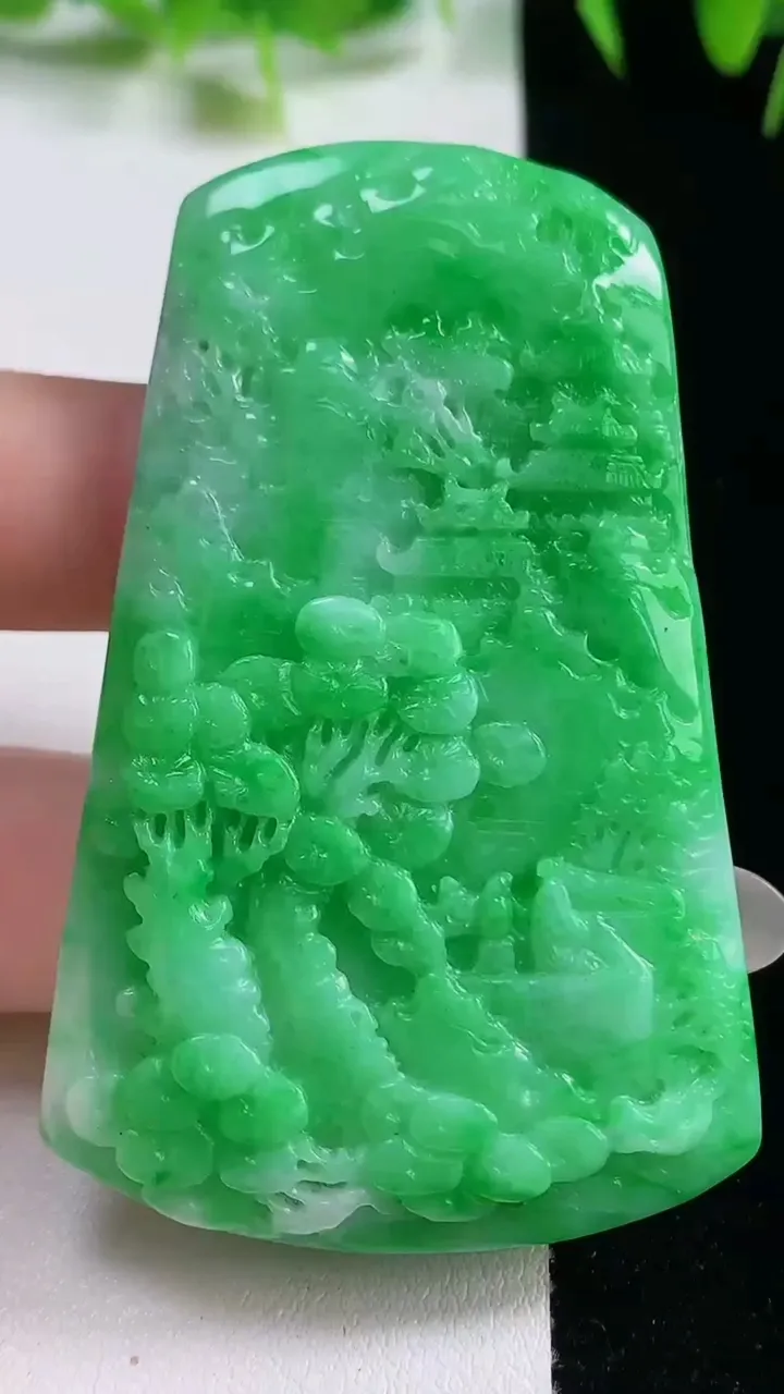 天然A货翡翠山水牌吊坠,尺寸64.4-40.5-5.7,重量:30.46g 10月21日