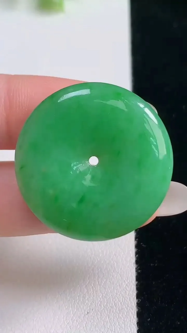 天然A货翡翠平安扣吊坠,尺寸30.3-5.4,重量:10.32g 10月21日