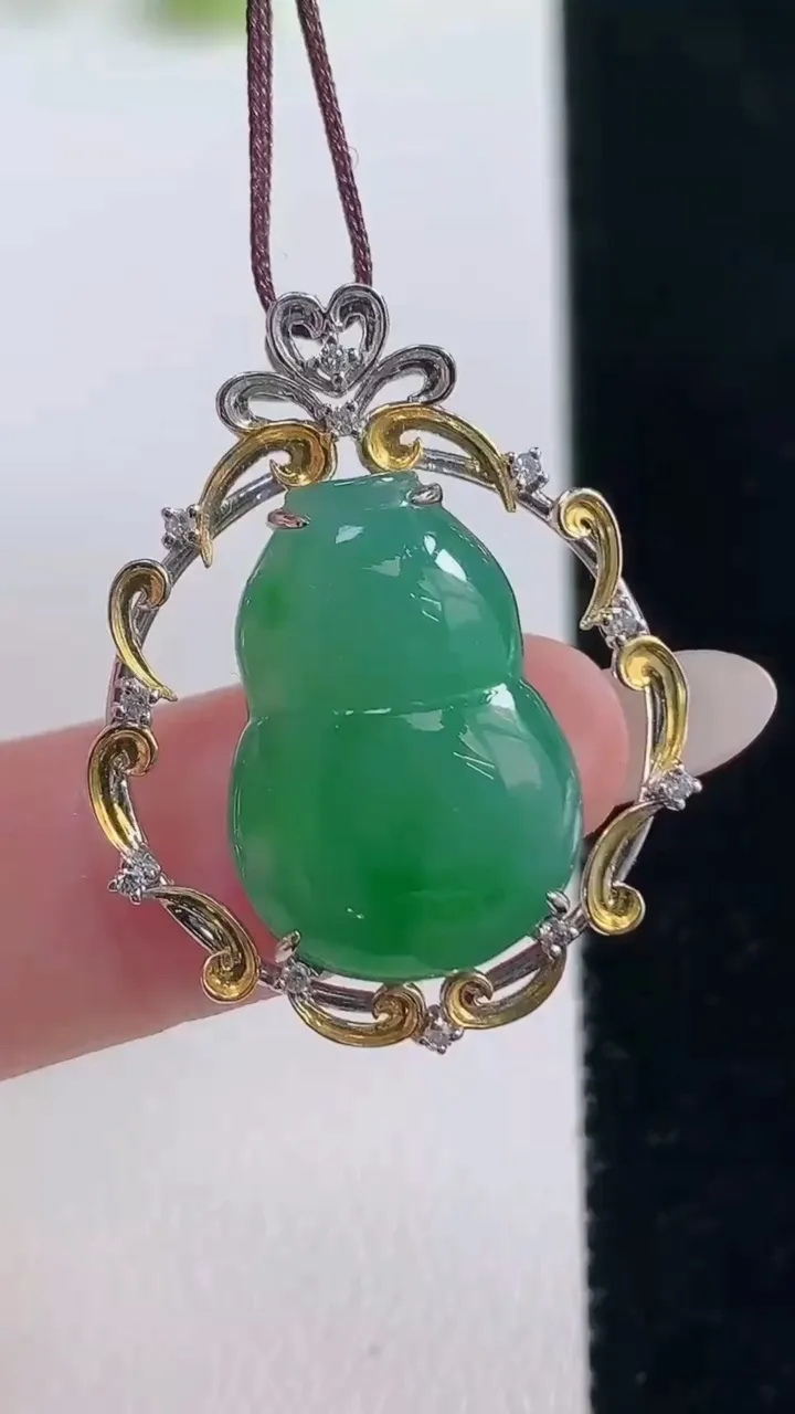 天然A货翡翠葫芦吊坠,尺寸30.4-21.7-6,裸石19.7-13.7重量:4.18g 10月21
