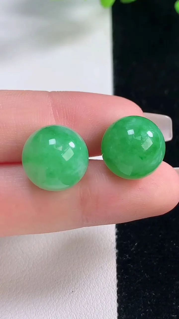 天然A货翡翠圆珠镶嵌件一对,尺寸13.8,重量:11.57g 12月20日