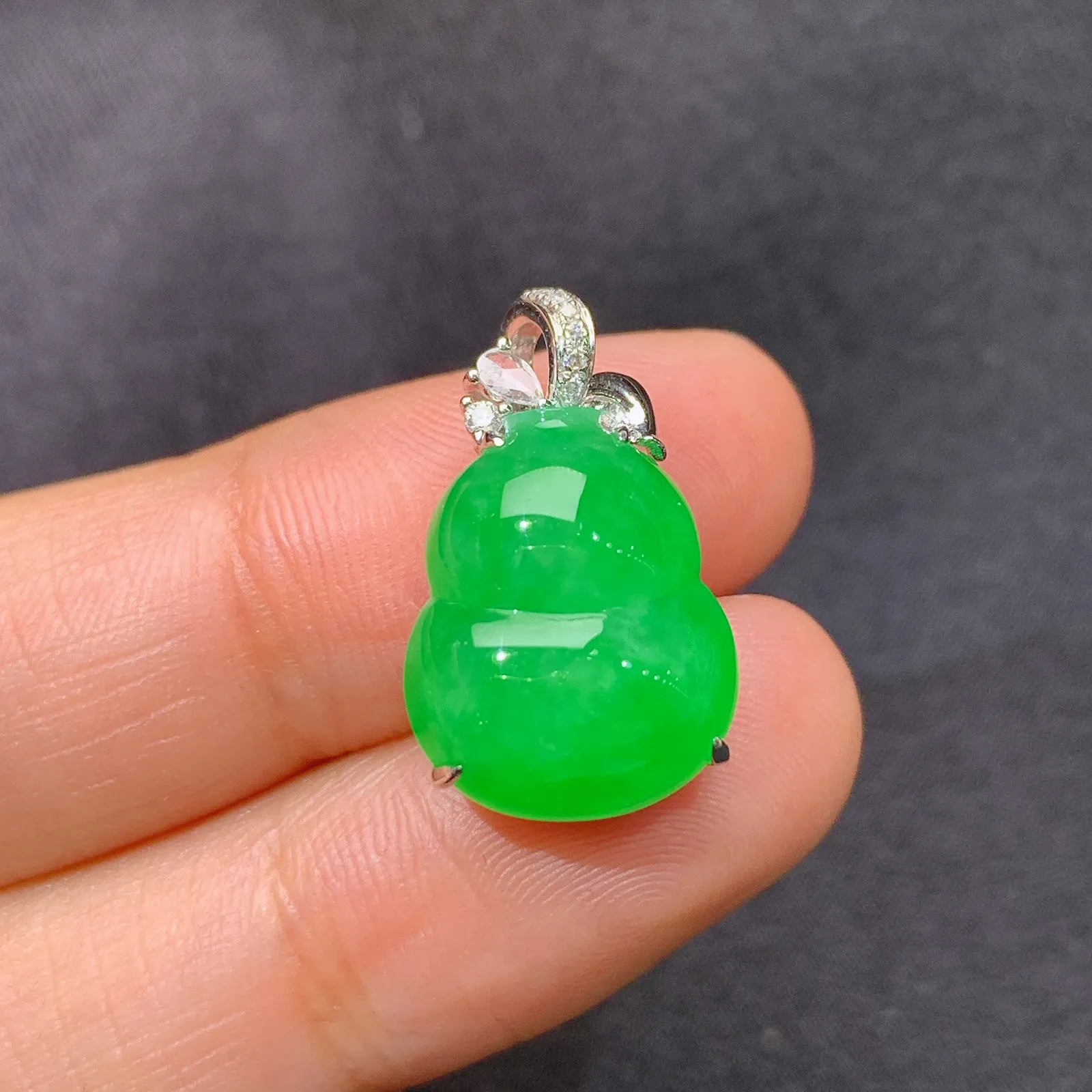 阳绿葫芦吊坠,18k金镶嵌,冰润色阳,玉质细腻,种水足,Lp 尺寸20.3*12.2*9