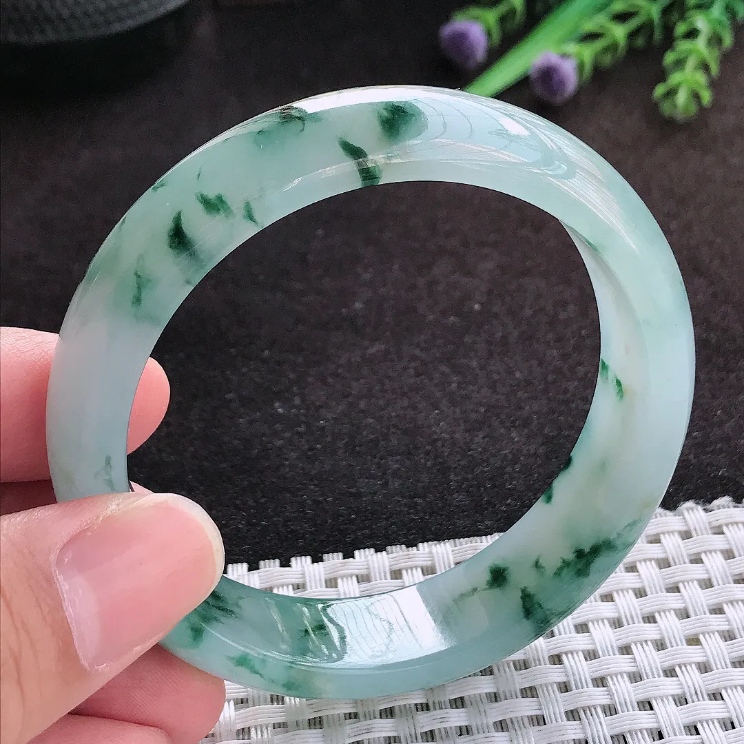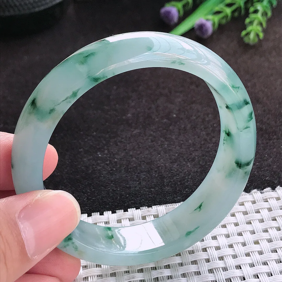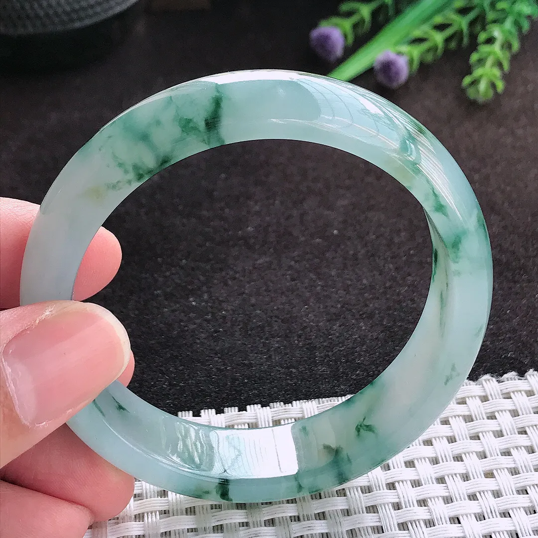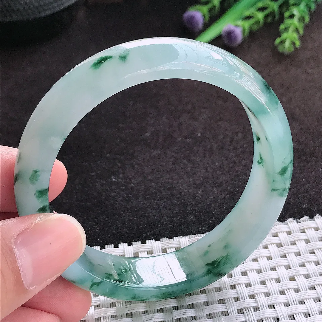 自然光55.8/15.1/7.6老坑冰胶果冻飘花手镯翡翠玉镯子美人镯手环
