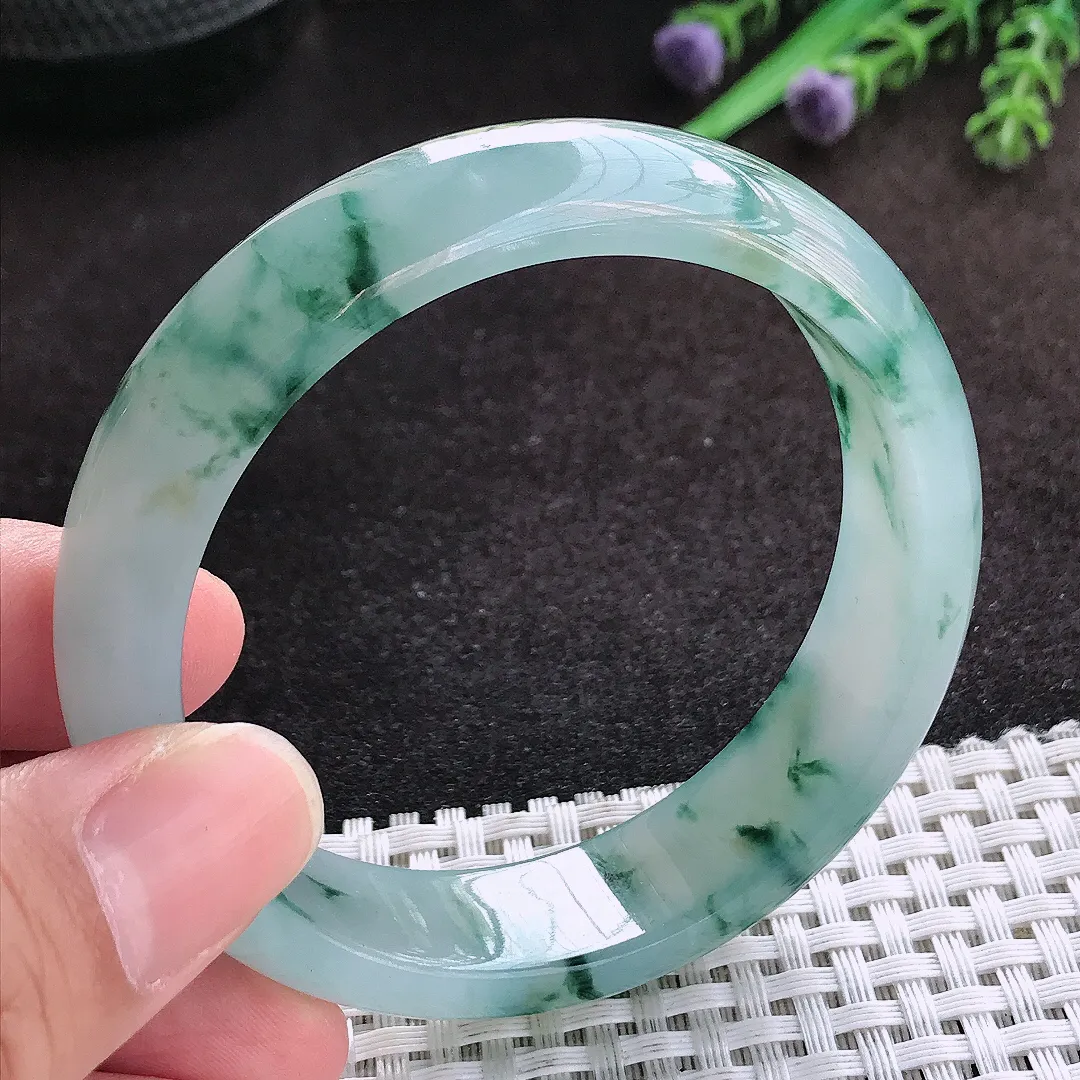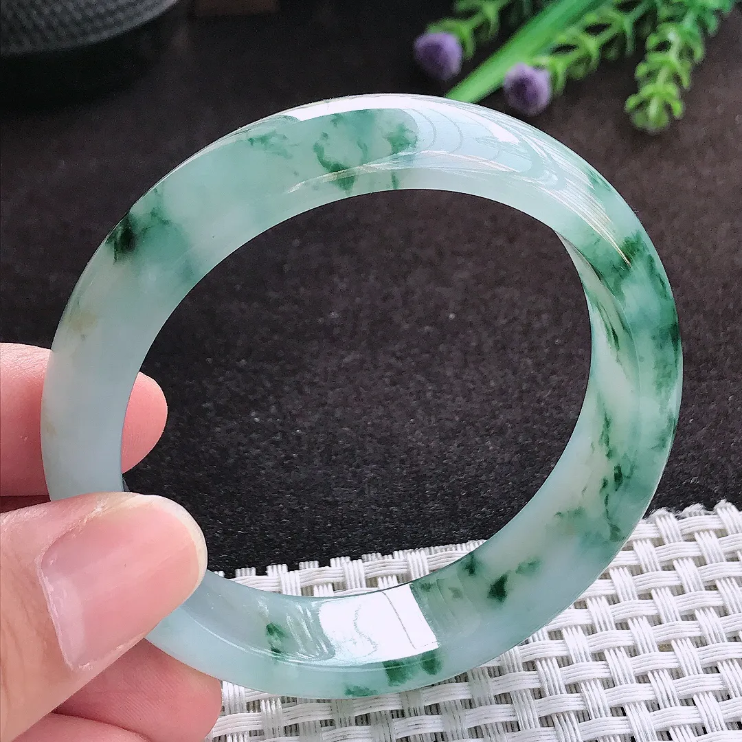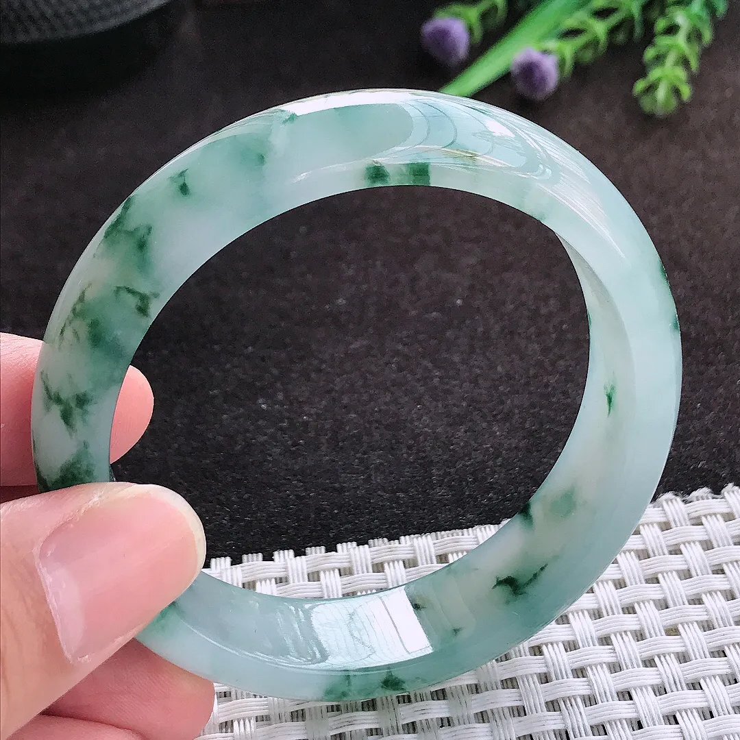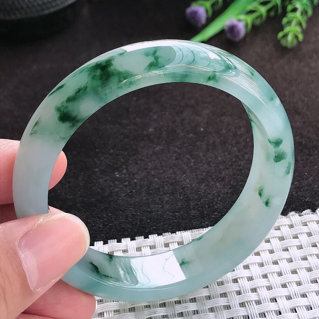 自然光55.8/15.1/7.6老坑冰胶果冻飘花手镯翡翠玉镯子美人镯手环
