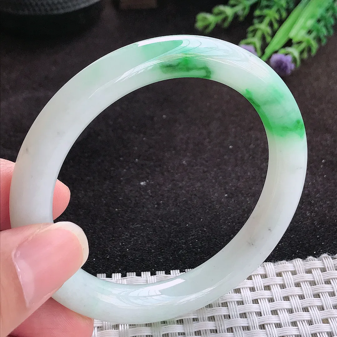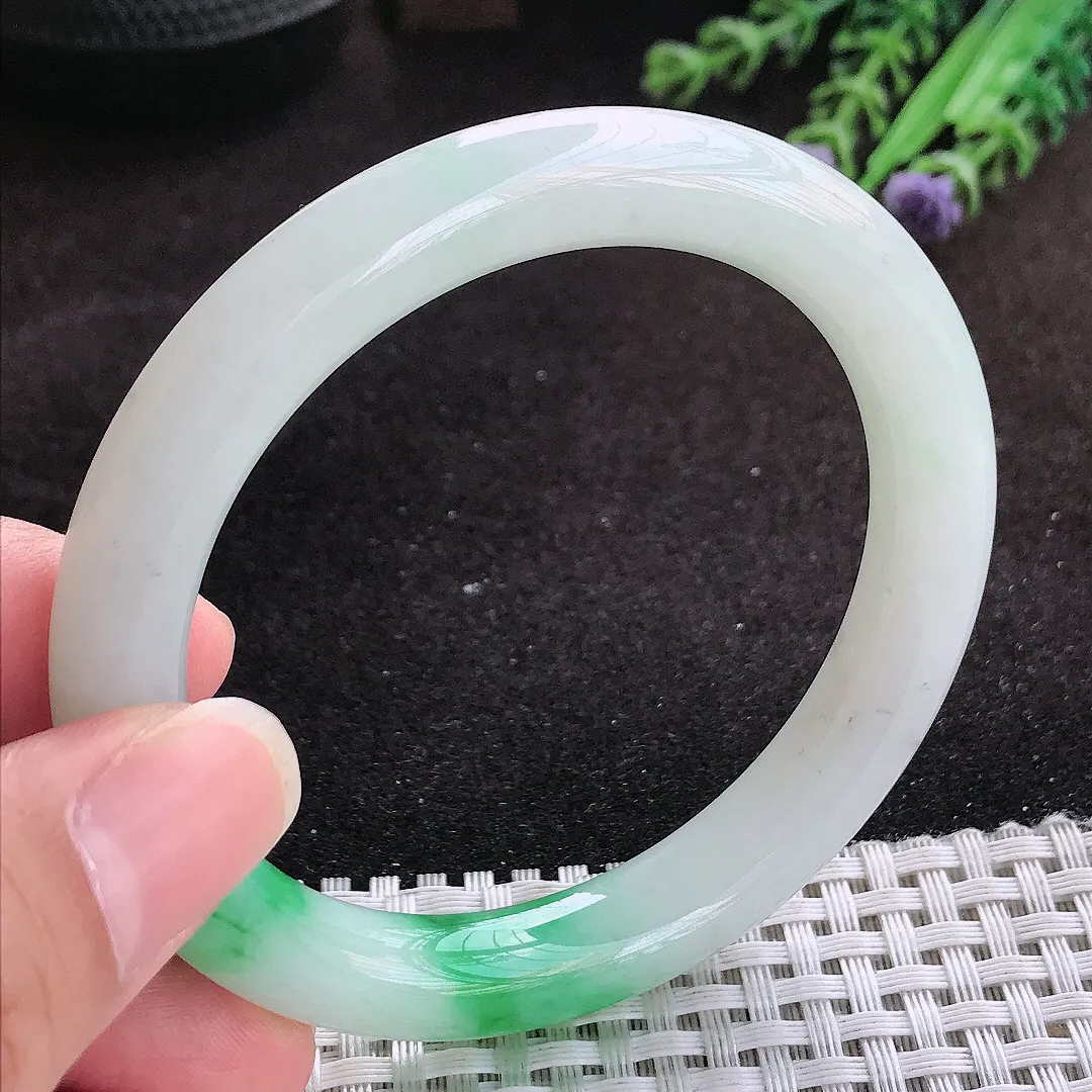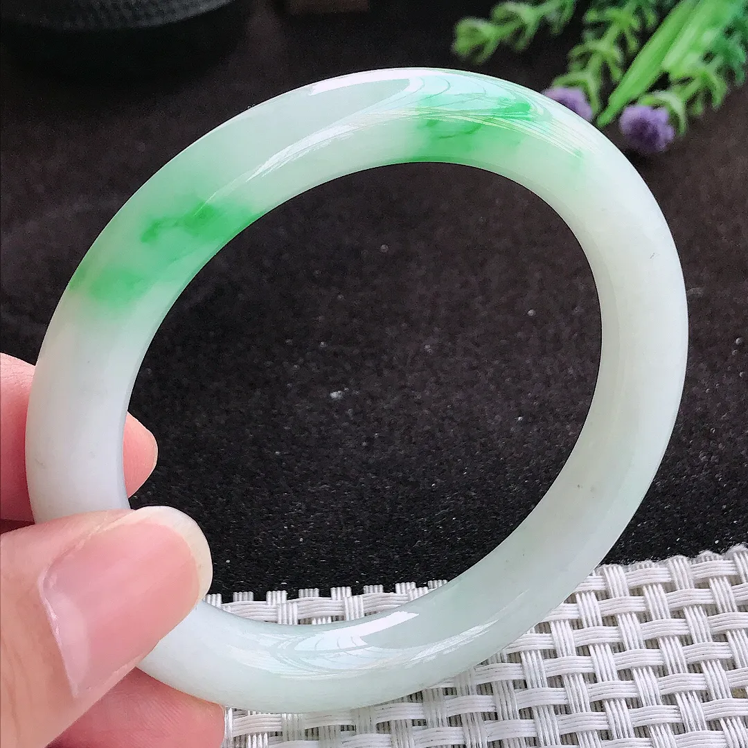 自然光57/12.8/9老坑精美温润飘花手镯玉镯子美人镯手环…