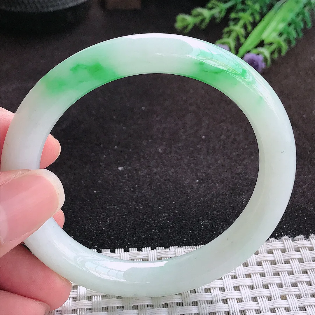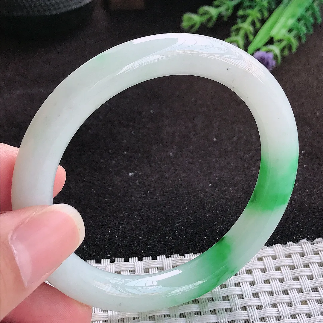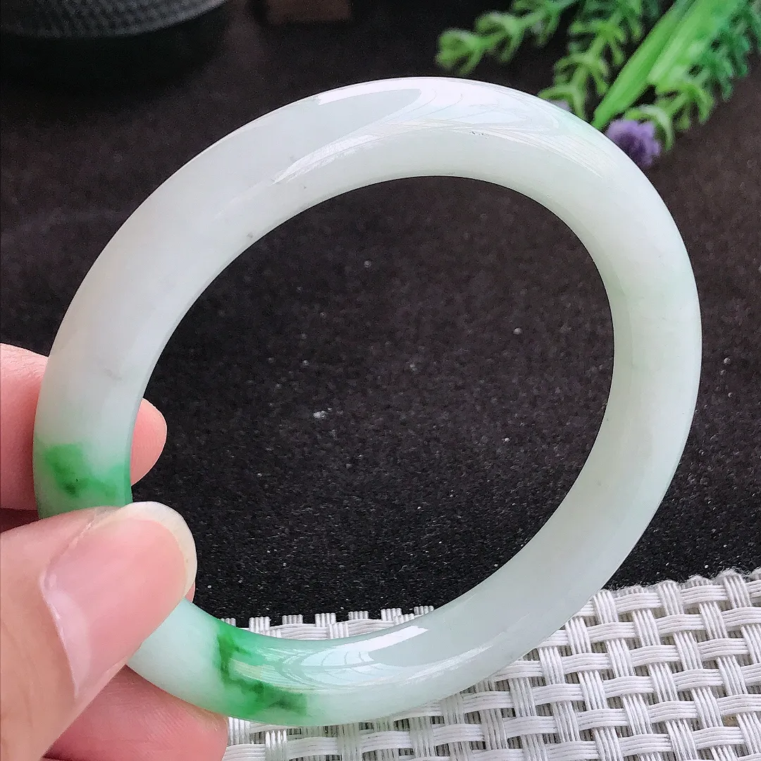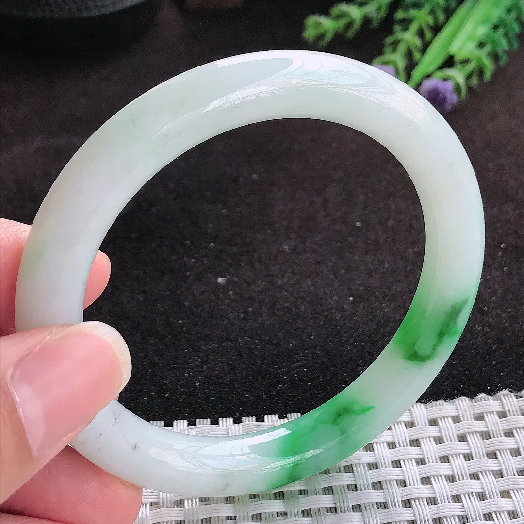 自然光57/12.8/9老坑精美温润飘花手镯玉镯子美人镯手环…