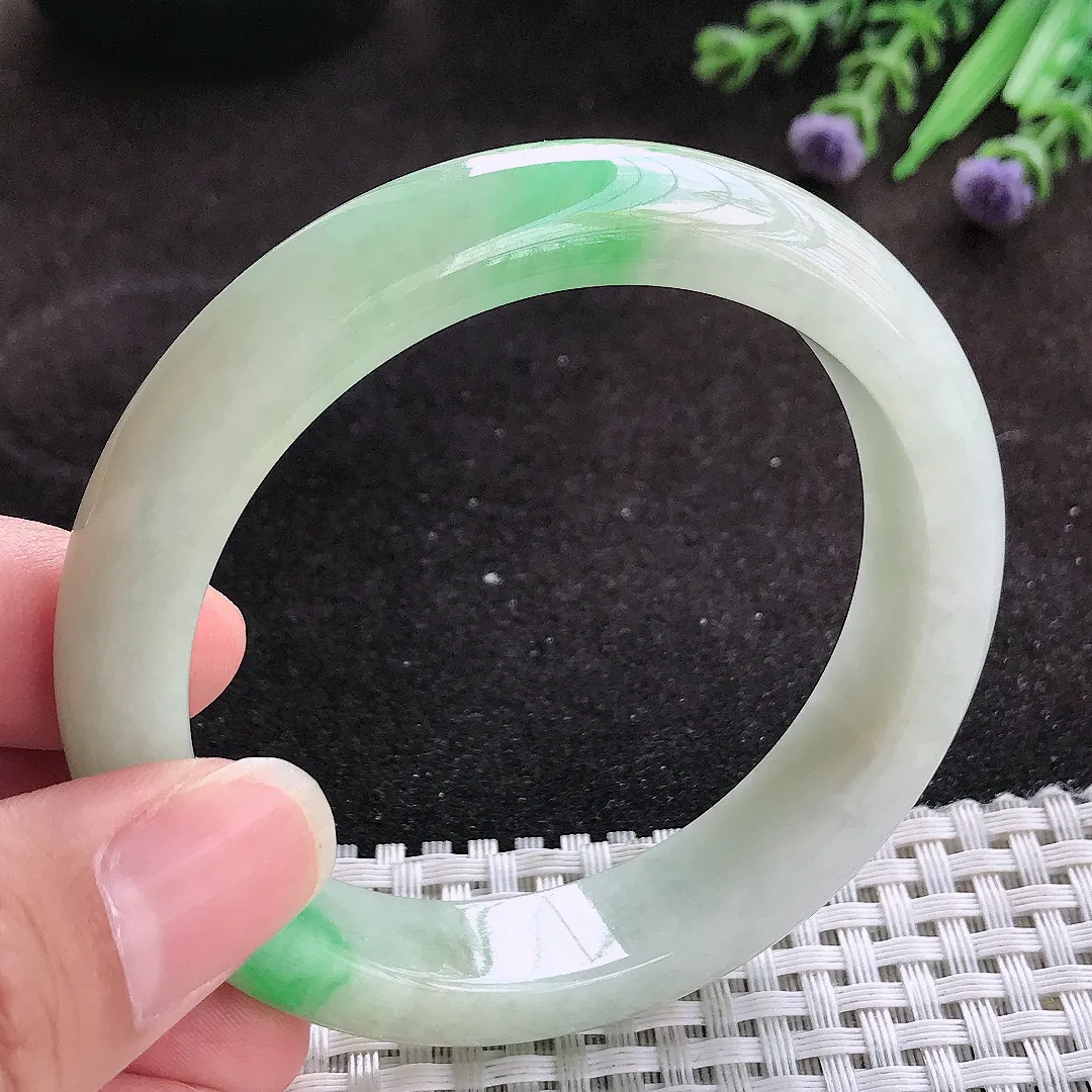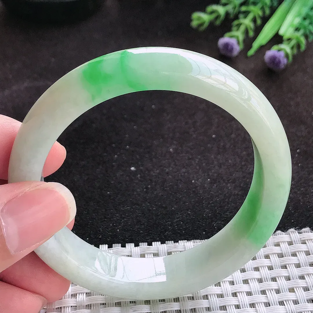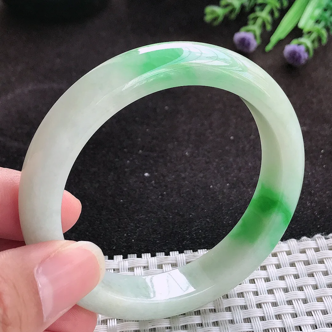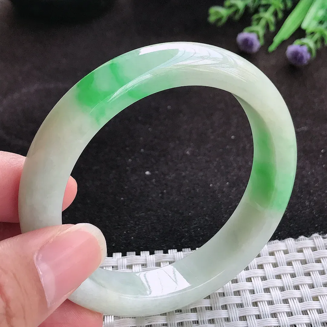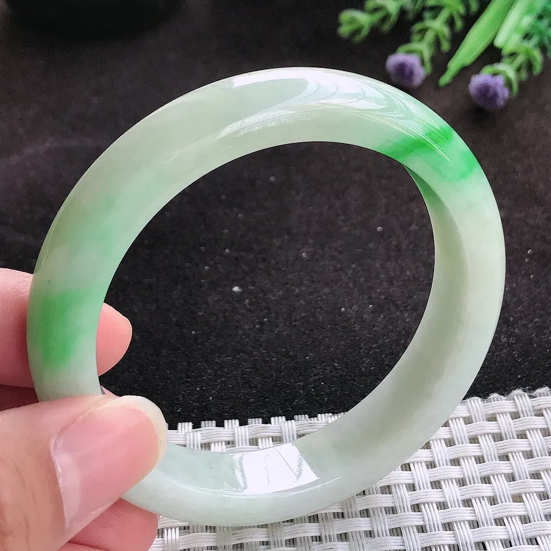 自然光56/12.6/8.3老坑精美温润飘阳绿手镯玉镯子美人镯手环…