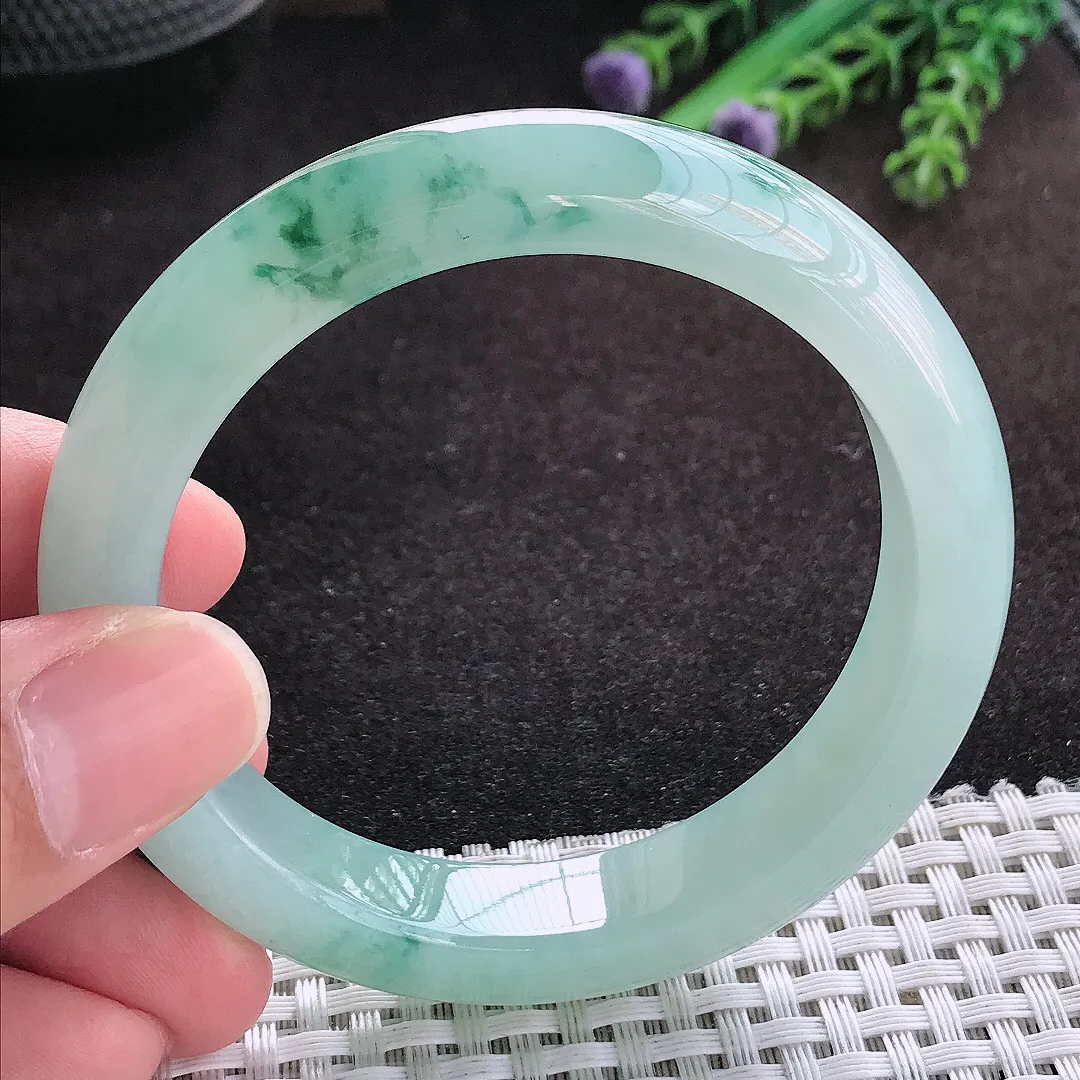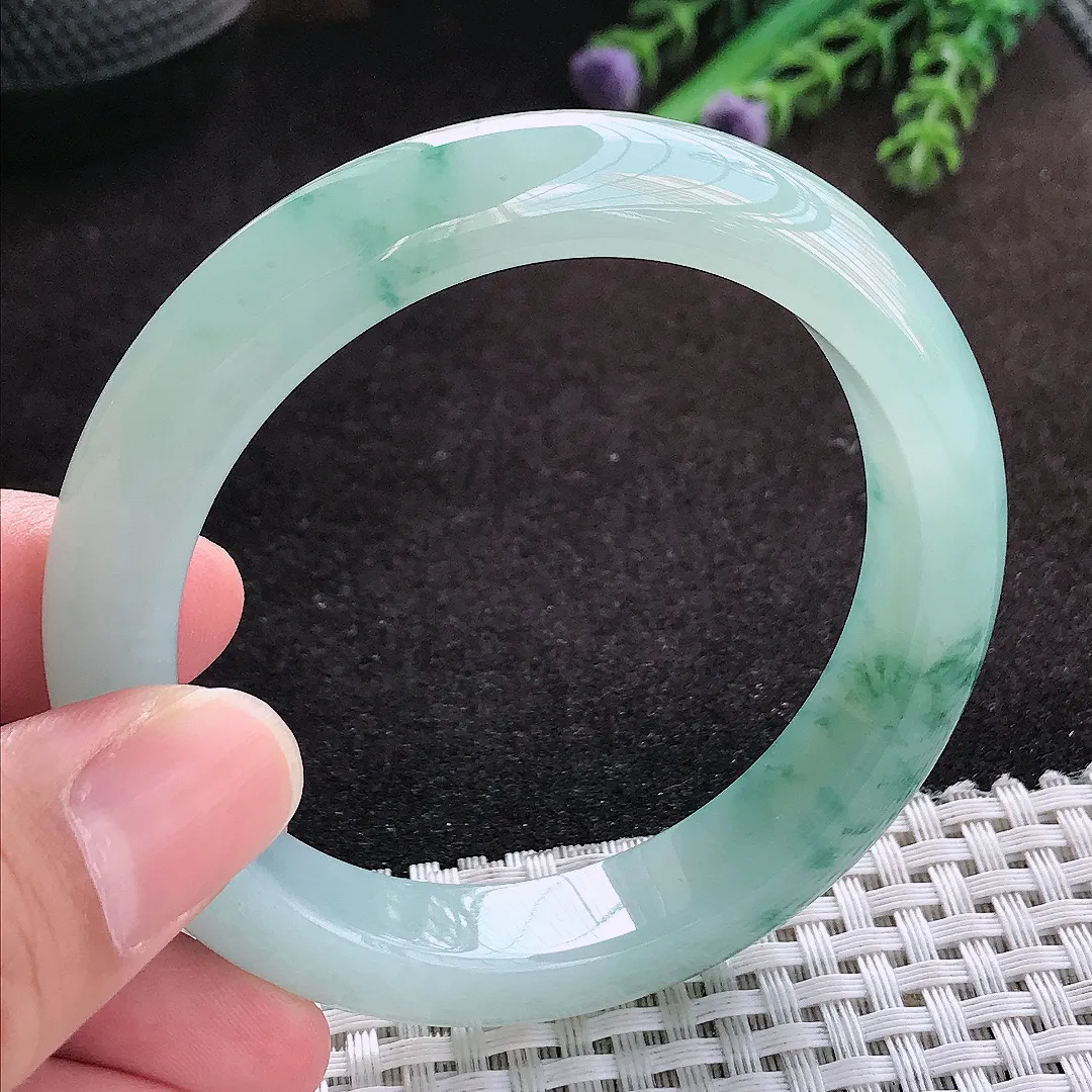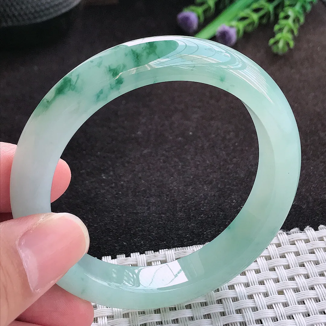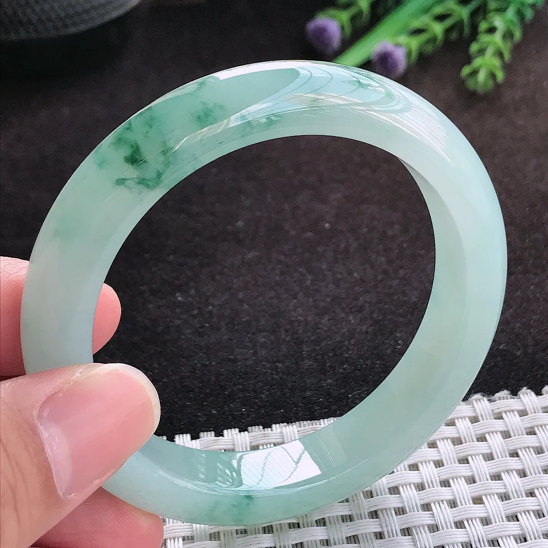 自然光54.8/11.8/8.7老坑冰胶水灵冰飘花手镯翡翠玉镯子美人镯手环