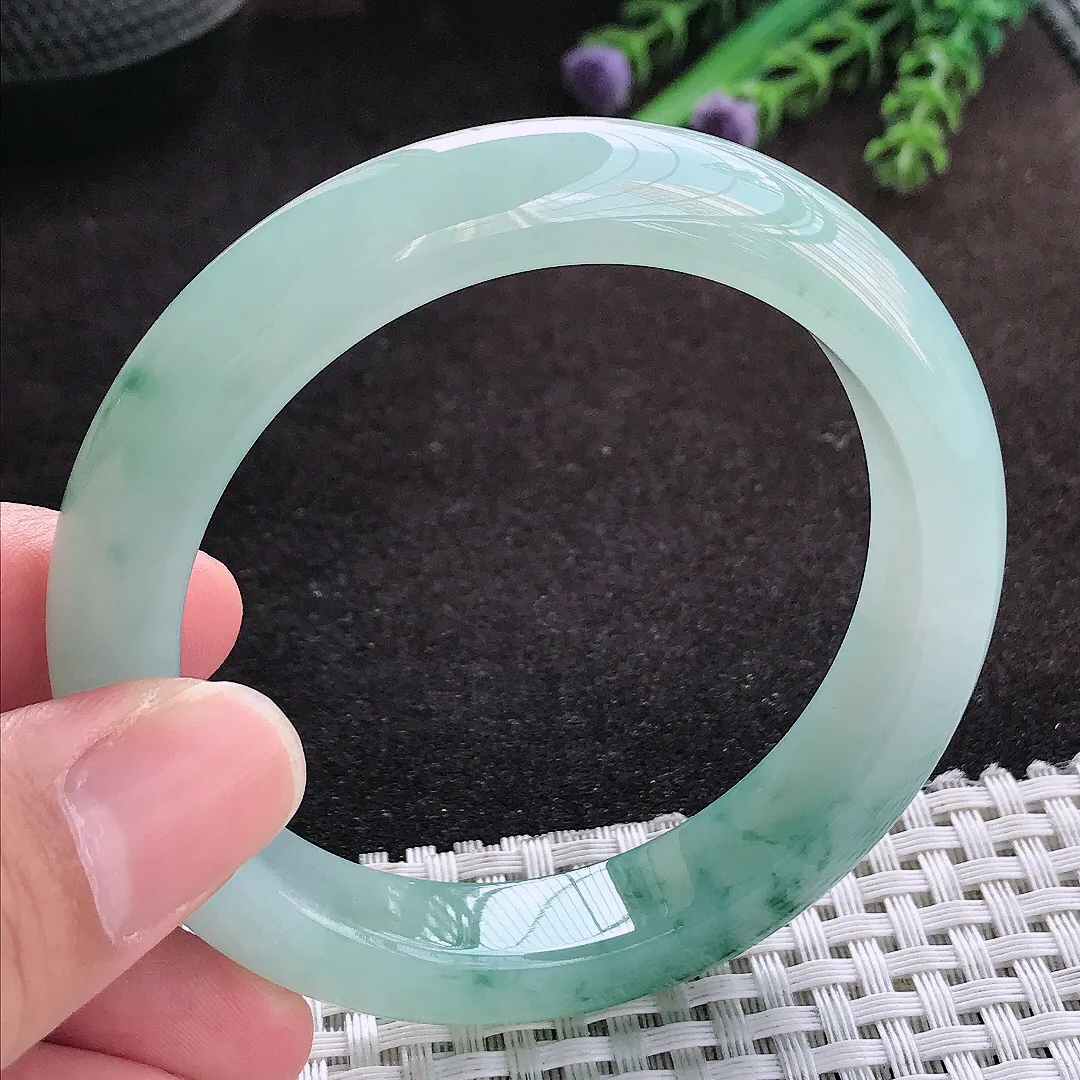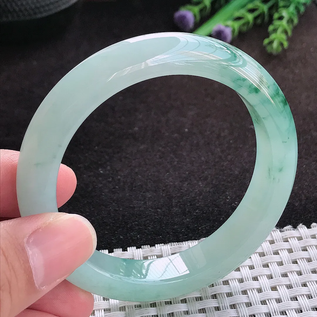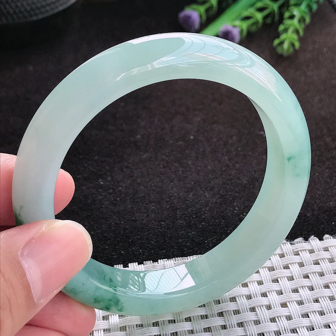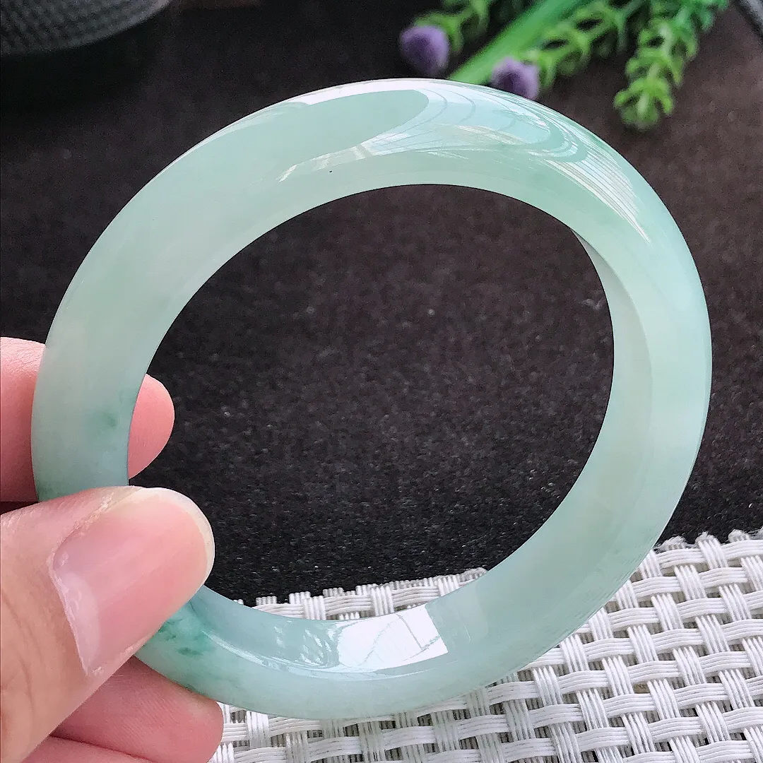 自然光54.8/11.8/8.7老坑冰胶水灵冰飘花手镯翡翠玉镯子美人镯手环