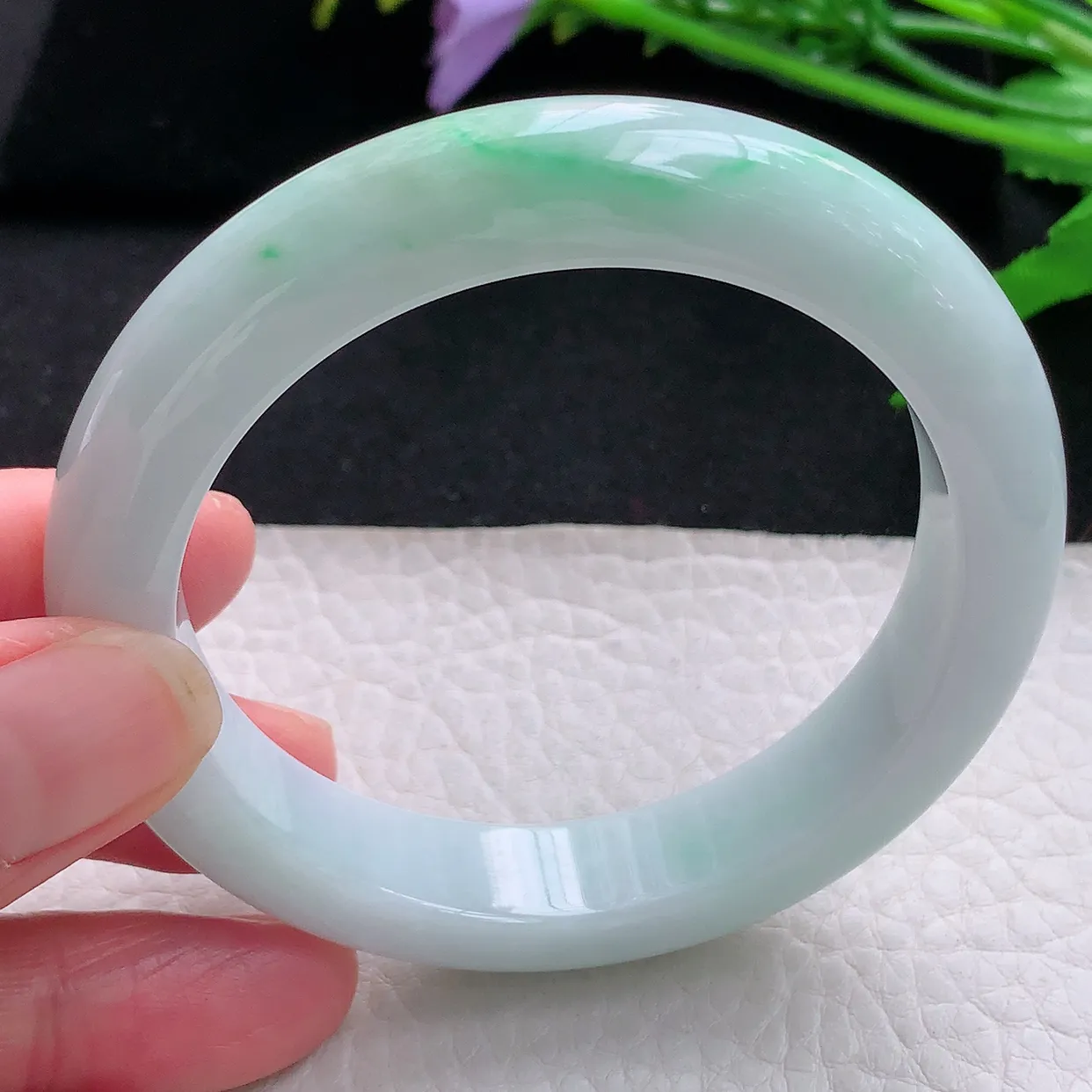 58圈有种有色天然翡翠A货淡紫玉手镯好种水春彩水润手镯67.22g…