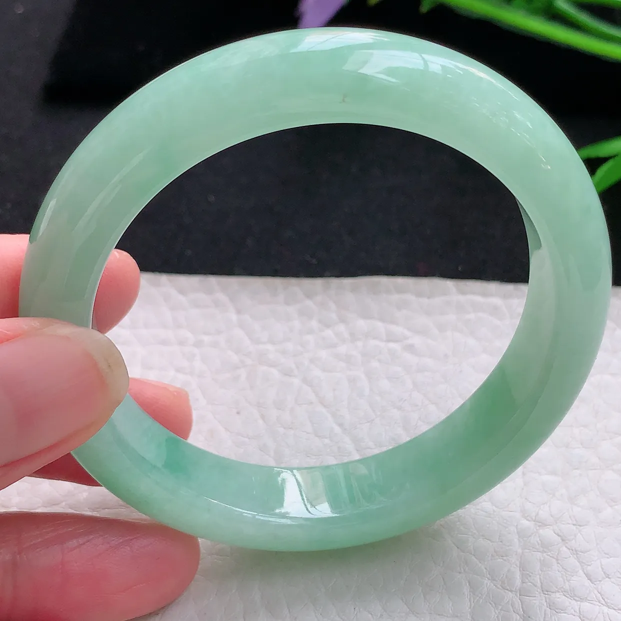 一直想买根心仪的镯子,但预算有限又不想将就一直没买到合适的。买这个镯子之前在平台另一个主播那花了一万拍了根飘花,那会明确跟主播说我愿意抬预算,但主播跟快销一样的习惯让我感觉像是被忽悠的买下了那个镯子,起货简直一言难尽,我挂平台到现在居然连1千都卖不掉!!真的是心态炸裂。也是不死心,我又在白天逛了直播间遇到九九。她很耐心,而且专不专业在遇到我这种挑剔的顾客时就尽显了!能花最少的钱买到自己心仪的货品真的跟主播的职业操守息息相关!!毕竟毛坯不能退,九九就很真诚很实在,她会很耐心的了解我的需求,其实我自己当时也不知道想要什么样的,但她会反复去了解我的需求,排除我不能接受的,了解我喜欢的,而且她看货总是会习惯给我们看自然光效果,这真的是值得所有翡翠主播学习的!最后在她极力推荐下我买了这个镯子(图一左边那个)起货真的很惊喜!!非常喜欢~她帮我反复沟通让我能捡到这样的大漏~这样的主播我真的是爱了~这个带蓝底飘黄翡镯子,水头足,肉质细腻,我这种拍照苦手用的还是苹果原相机,都拍不出它一半的美~跟大家郑重推荐九九~买翡翠找她不踩坑!我不是托哈哈哈,我想说她值得!!也感谢浅笑和翅膀帮忙给意见🥰!