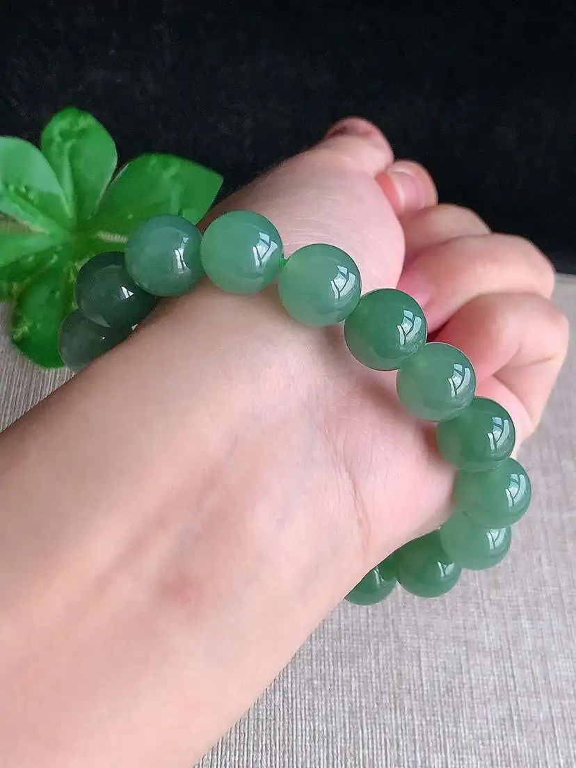 a货翡翠老坑冰种满绿圆珠佛珠手串17颗 尺寸11.6mm 重量49.08g 1014
