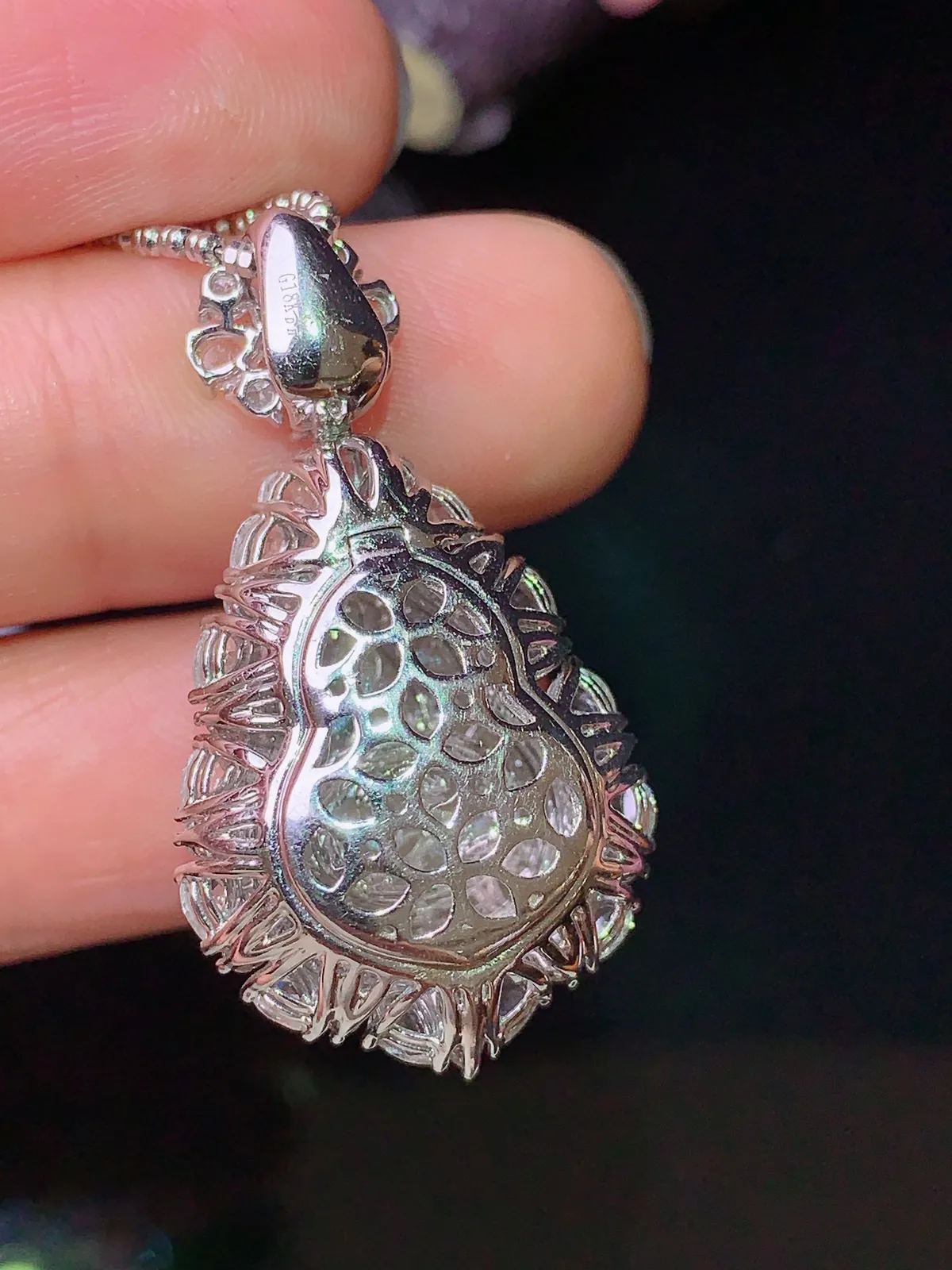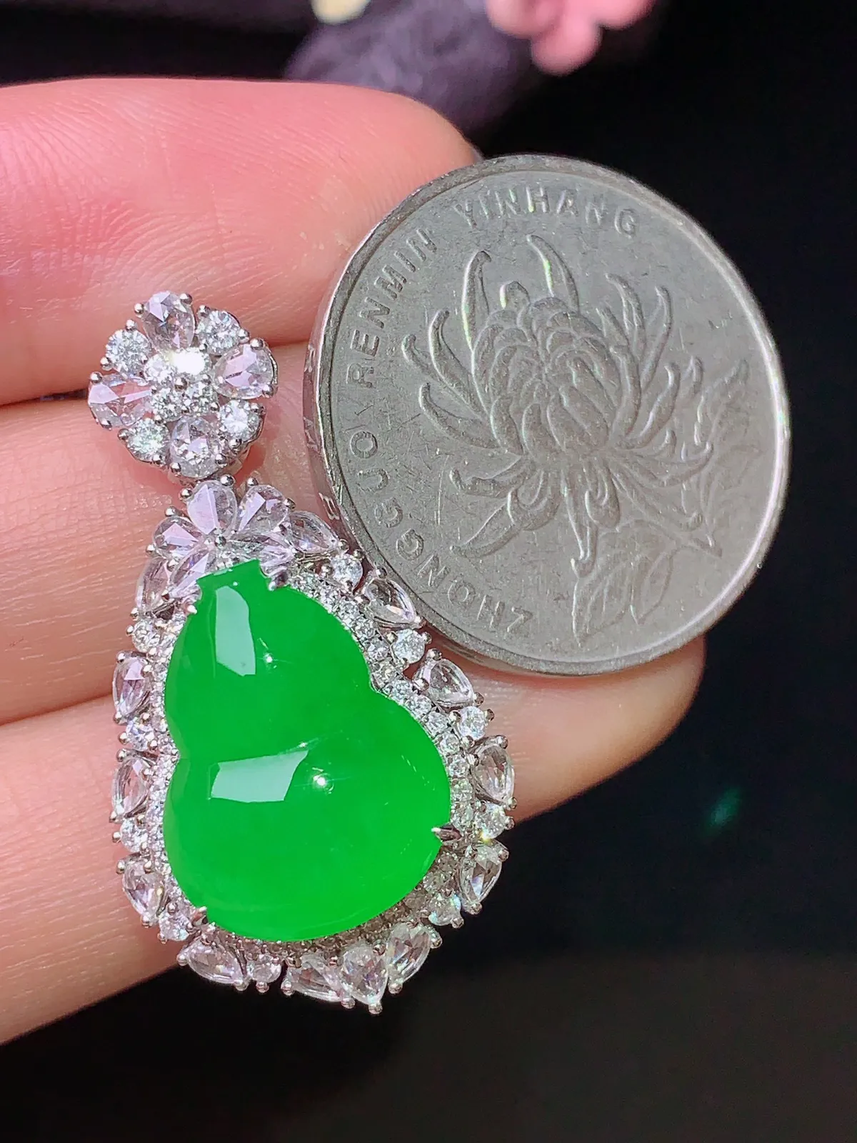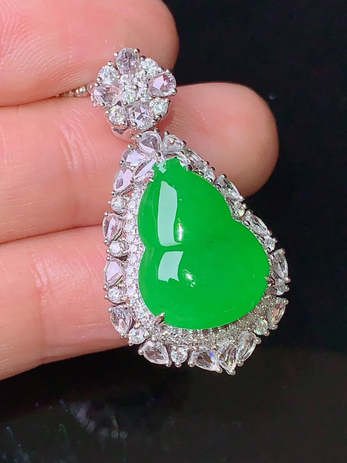 18k金钻镶嵌满绿葫芦吊坠 玉质细腻 色泽清新艳丽 整体尺寸33*18.2*12.2