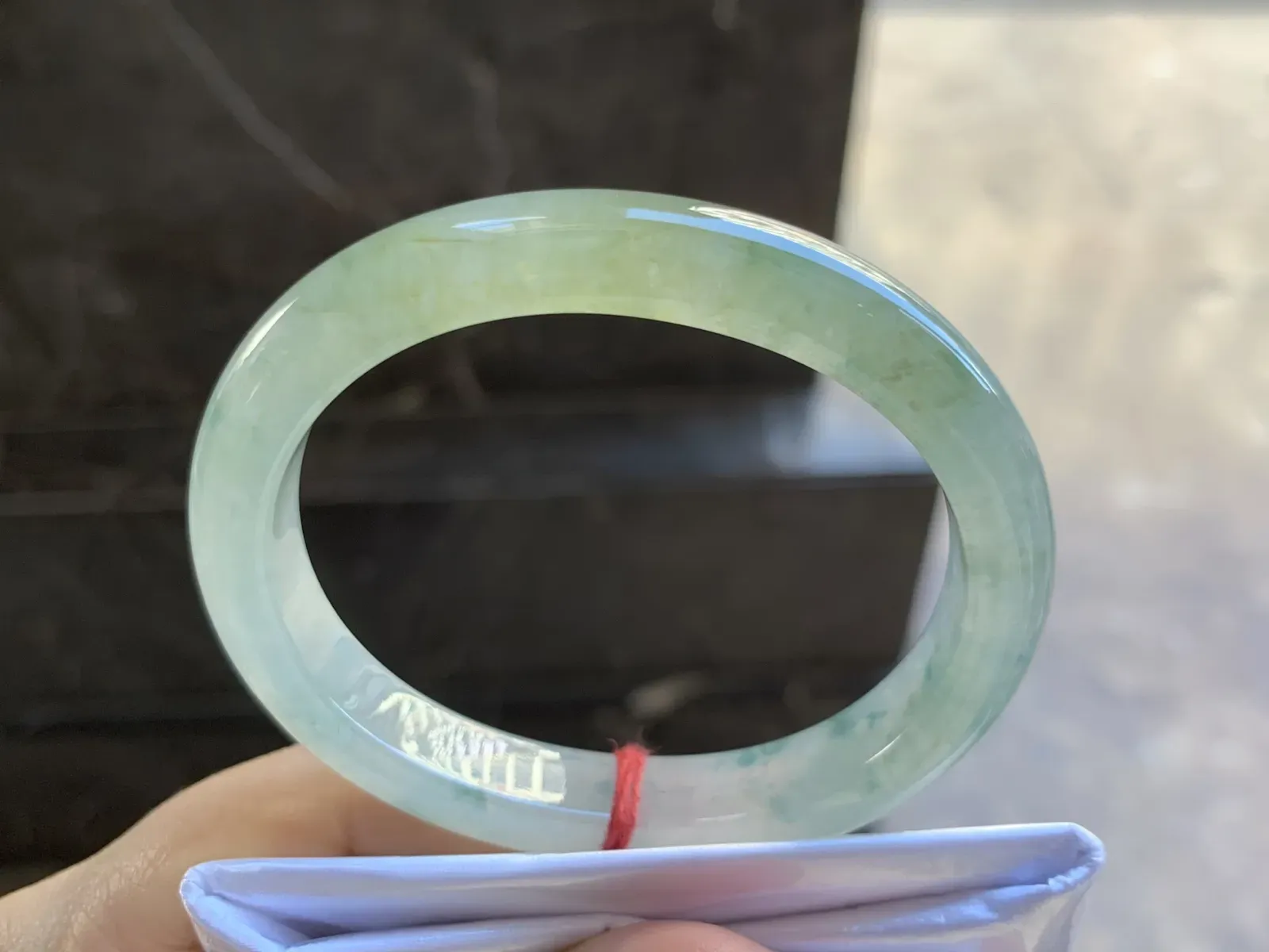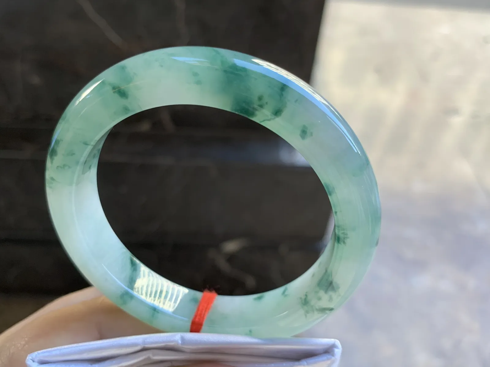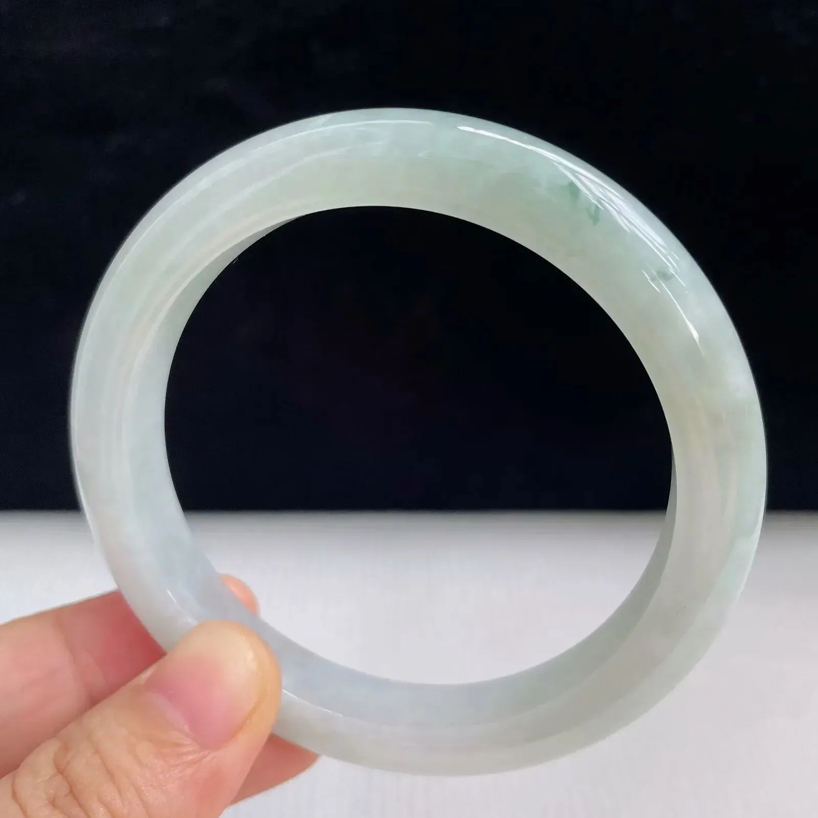 jx自然光58.5*12*8平安镯 缅甸翡翠a货玉手镯冰飘花宽边玉手环