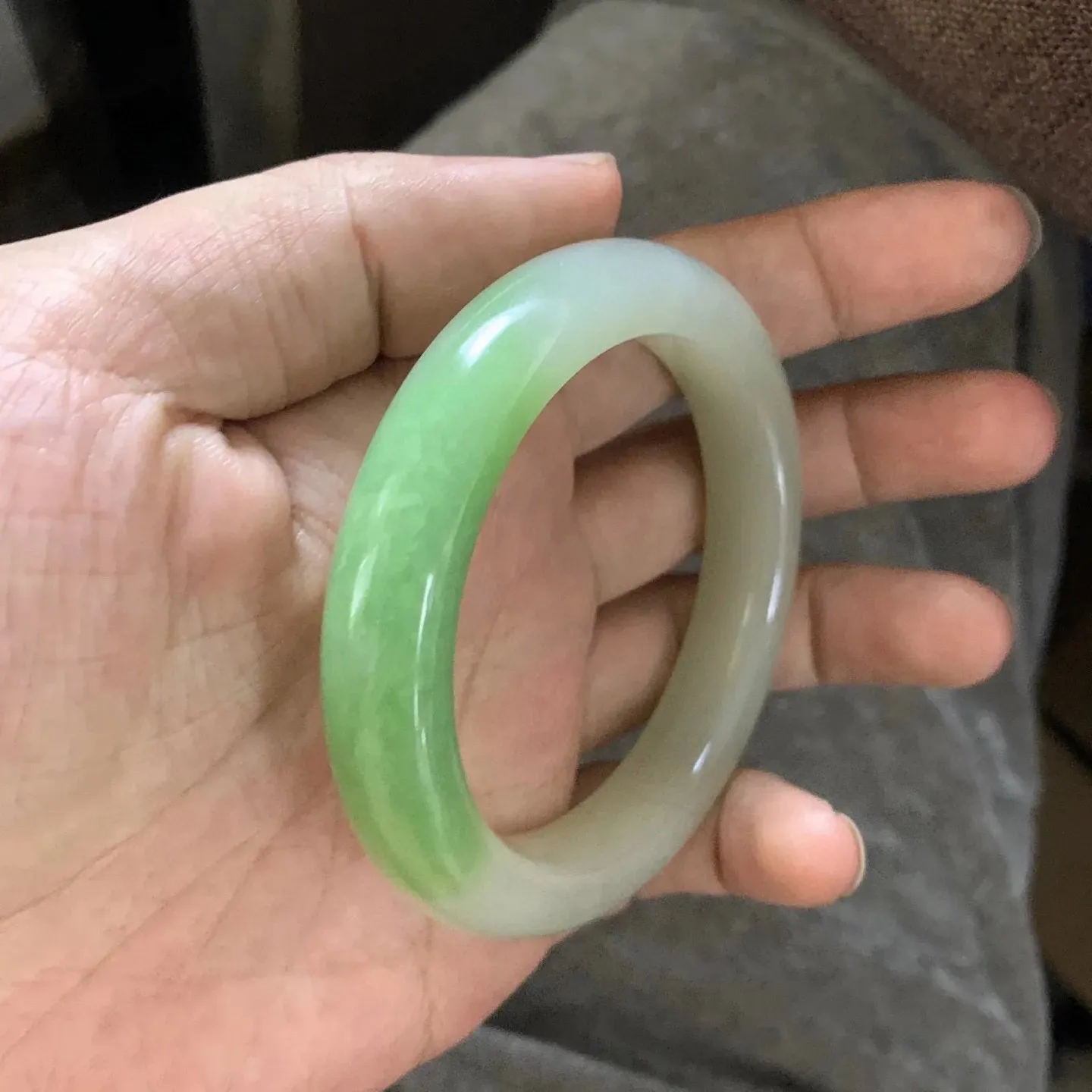 和田玉碧玉56圈口菠菜绿手镯!玉质细腻油润 底色纯净 无裂无杂 脂粉好,品质好。