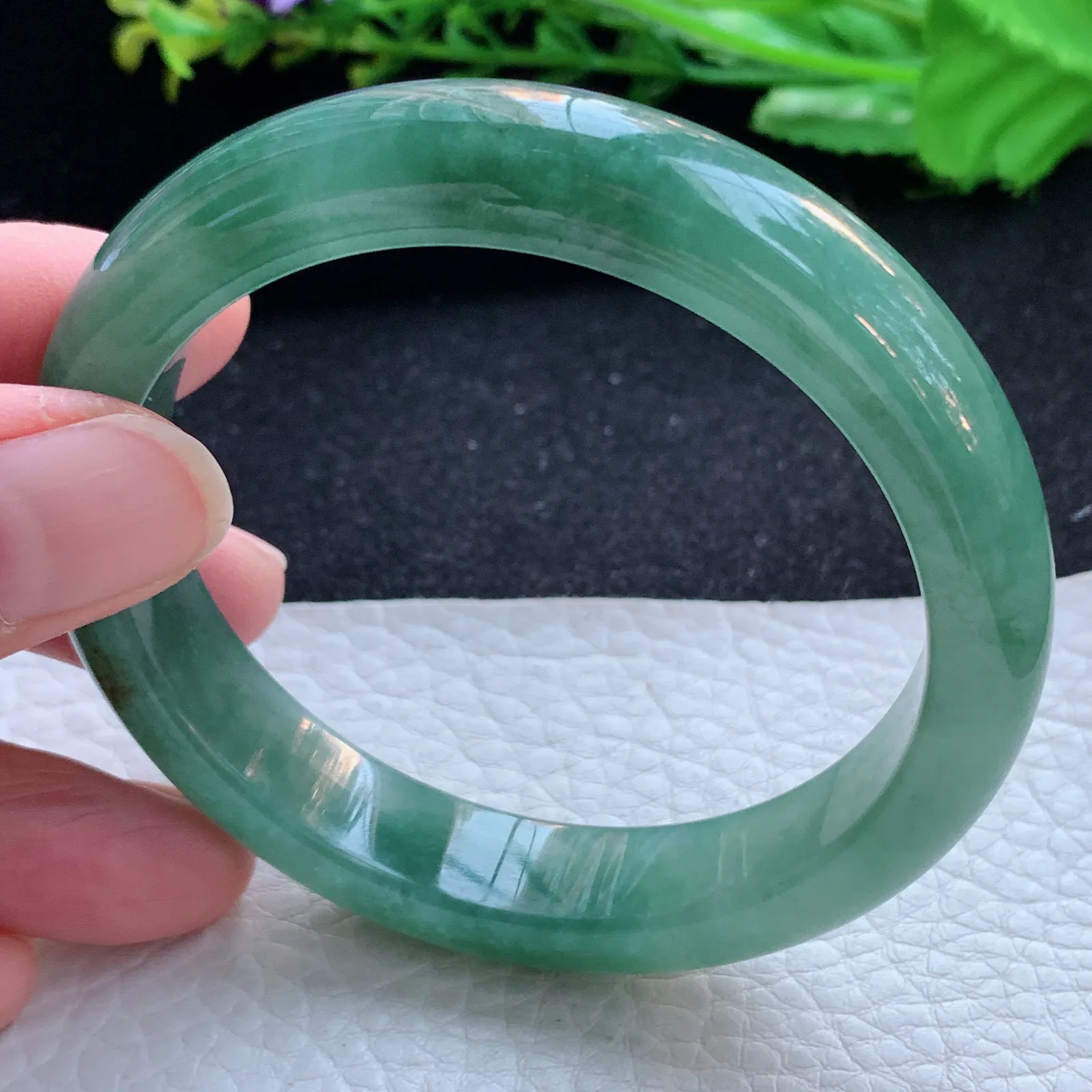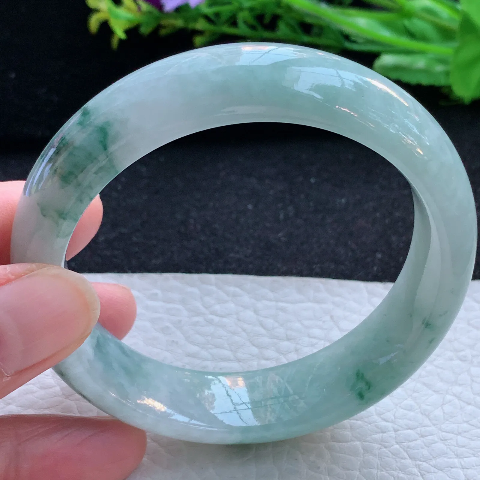 天然A货翡翠52.5/9.9/7.2老坑冰润飘花手镯宽边玉手镯