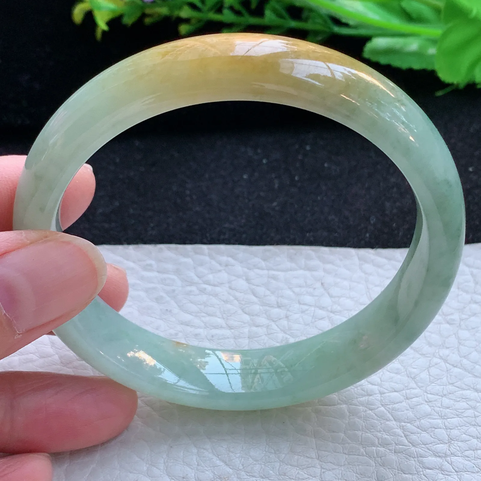 冰黄翡贵妃手镯,完美无纹裂。自然光实拍。53-45-12.6-7.3