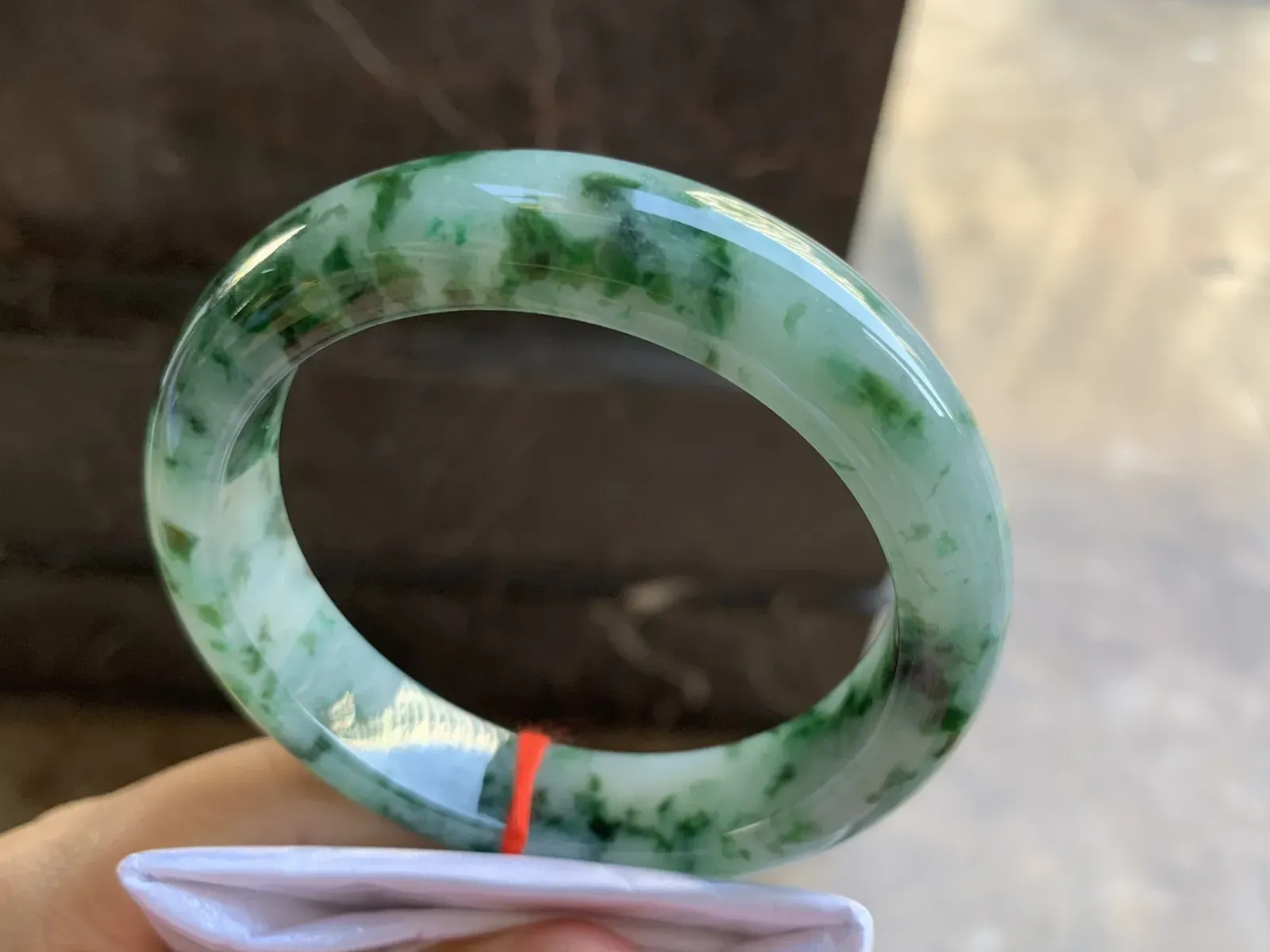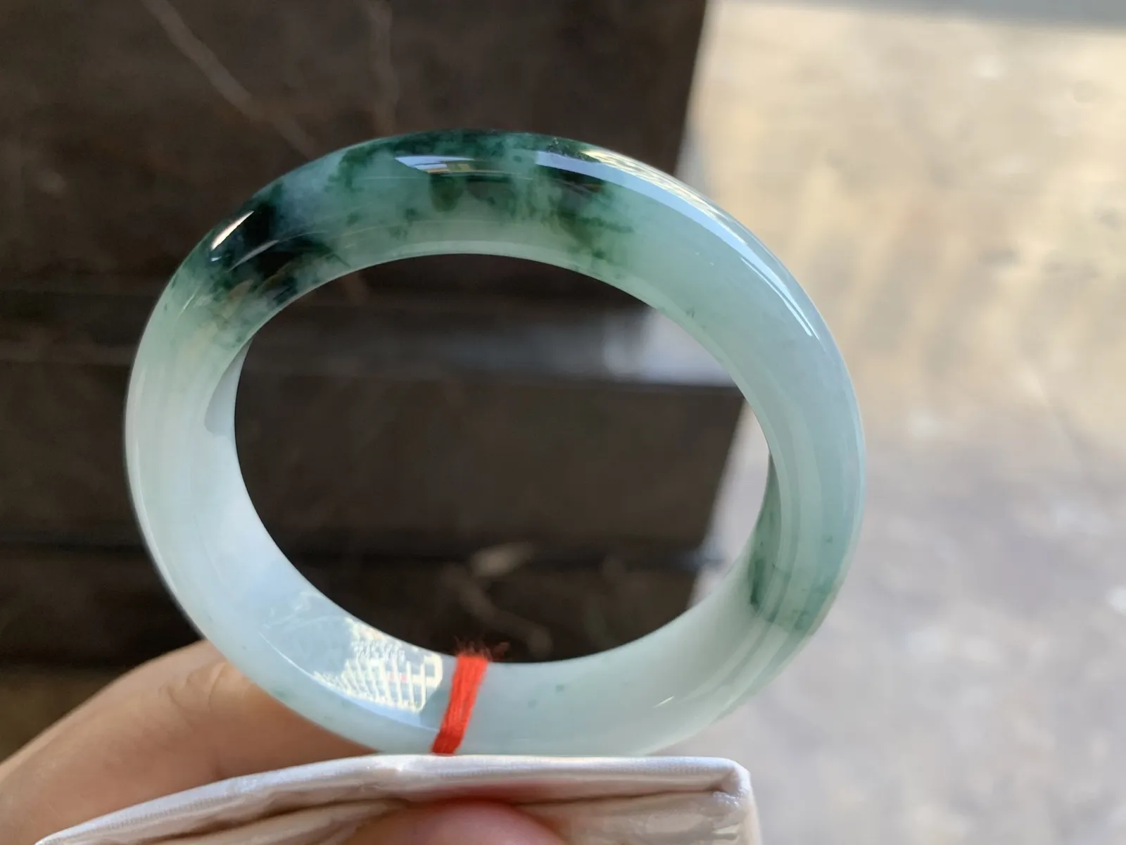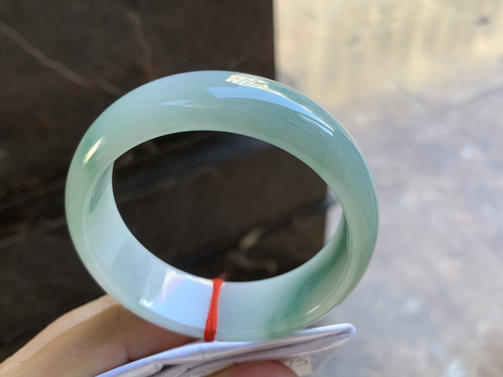 n自然光56*12*8平安镯 缅甸翡翠a货玉手镯冰胶白月光宽边玉手环